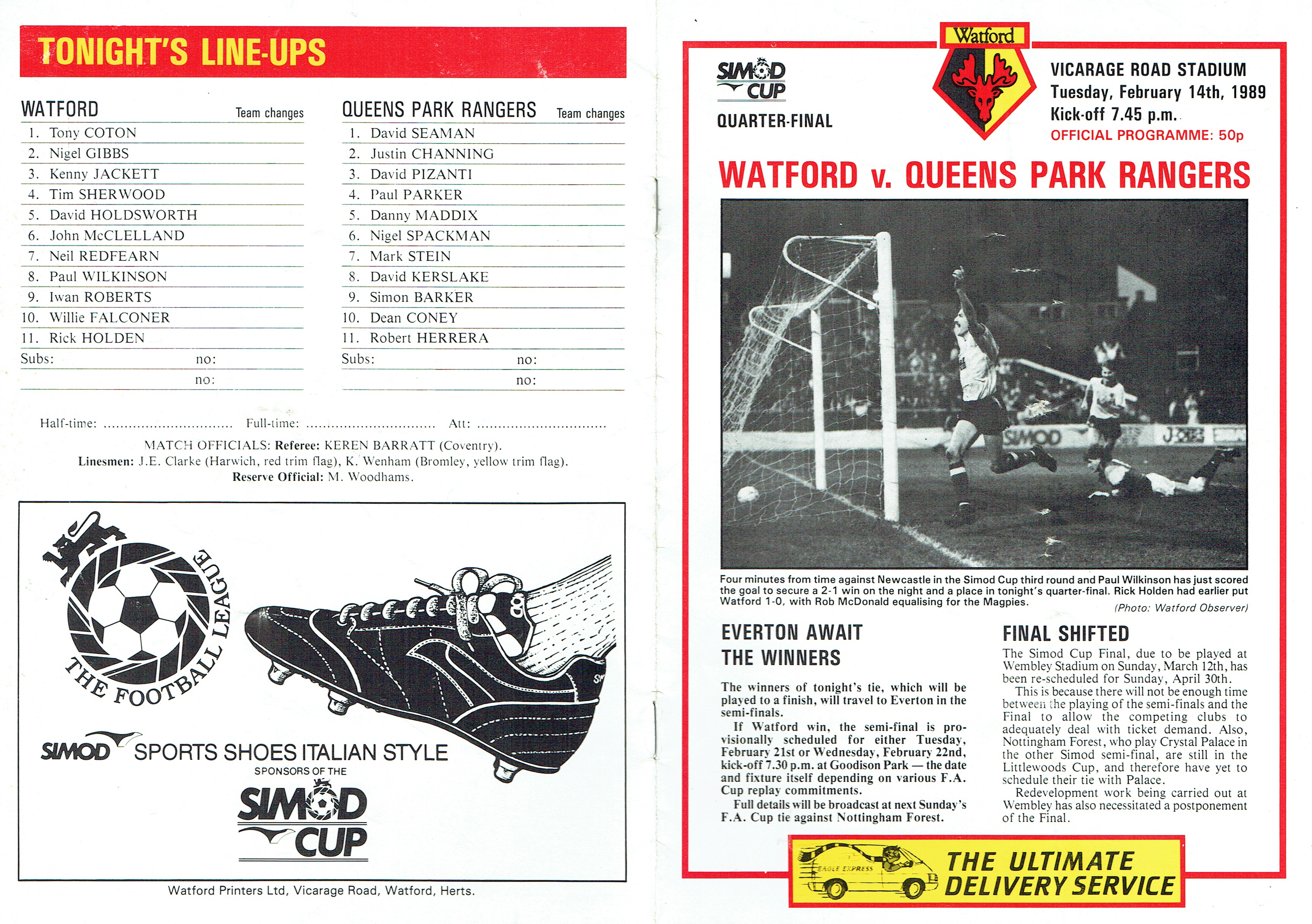 Originally postponed just 23 minutes before kick off on the 4th January.