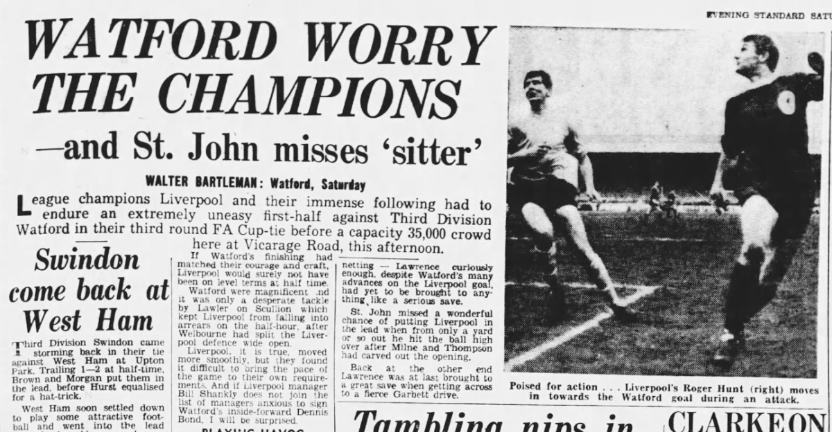 This was the first 30,000+ attendance at Vicarage Road.
