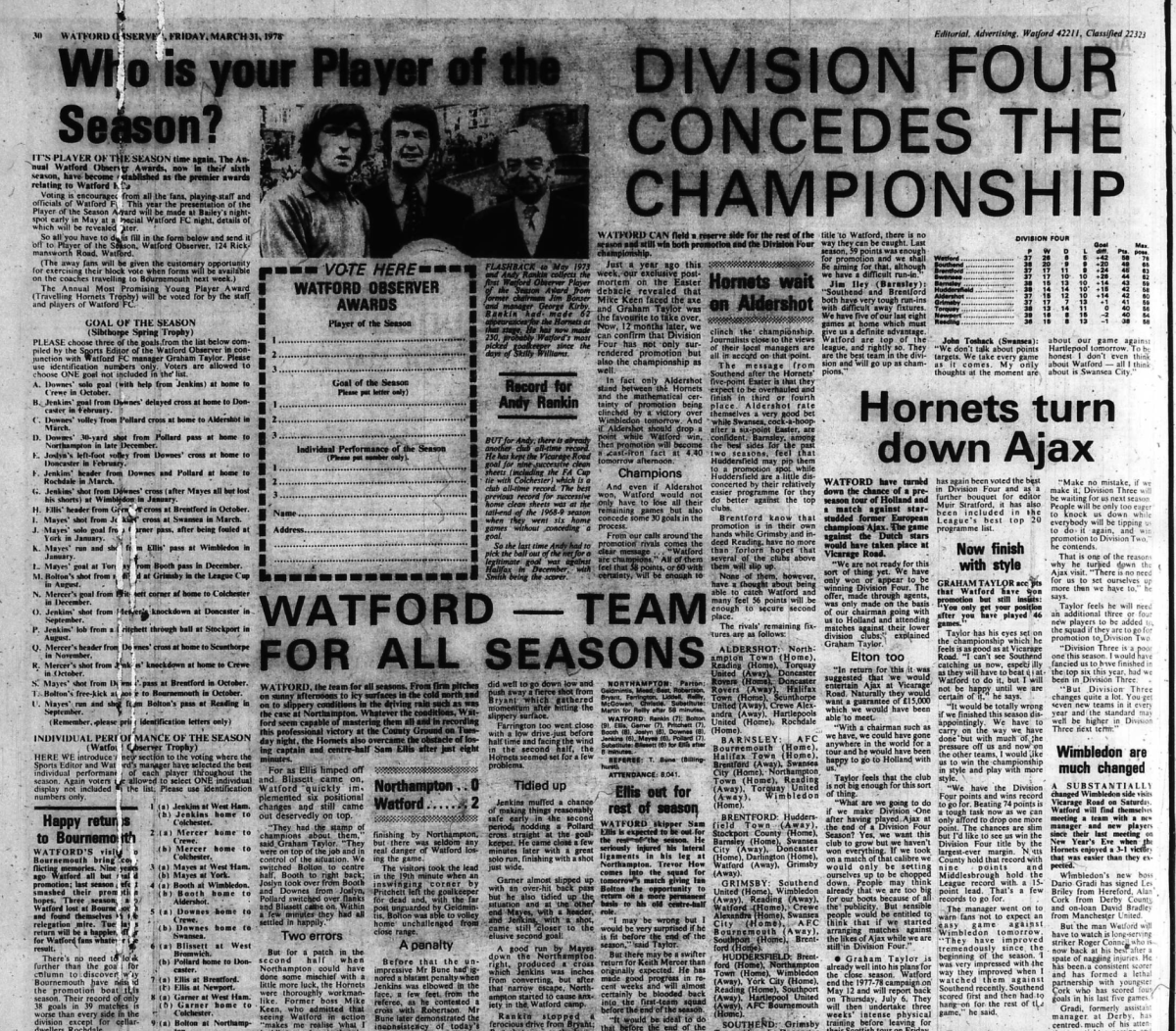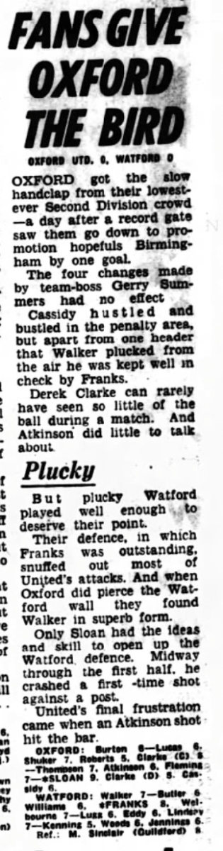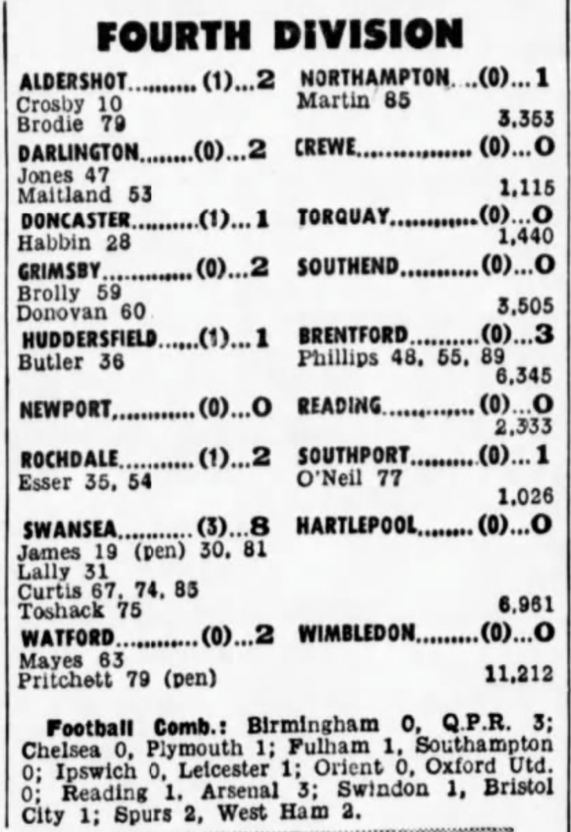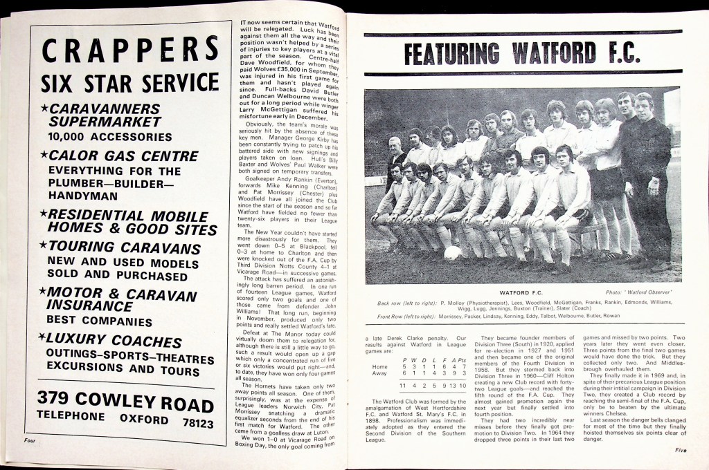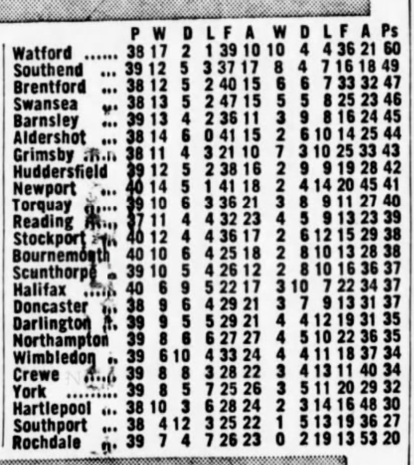 This result, combined with Fulham’s win against Millwall ,confirmed our relegation back to the Third Division.