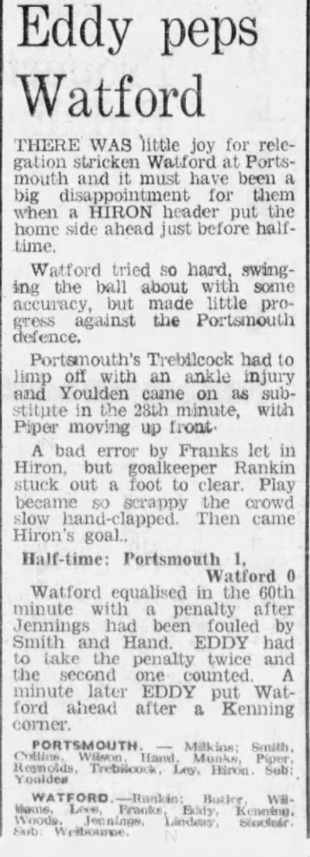 An 18 year old by the name of Luther Blissett made his Watford debut in this game coming on as a substitute. Over the next 16 years he would make 503 appearances for us which remains a club record.