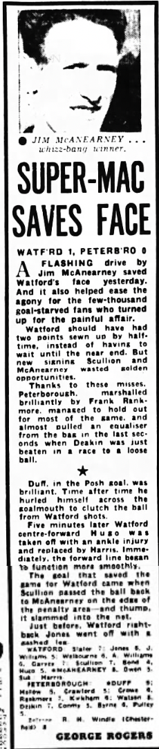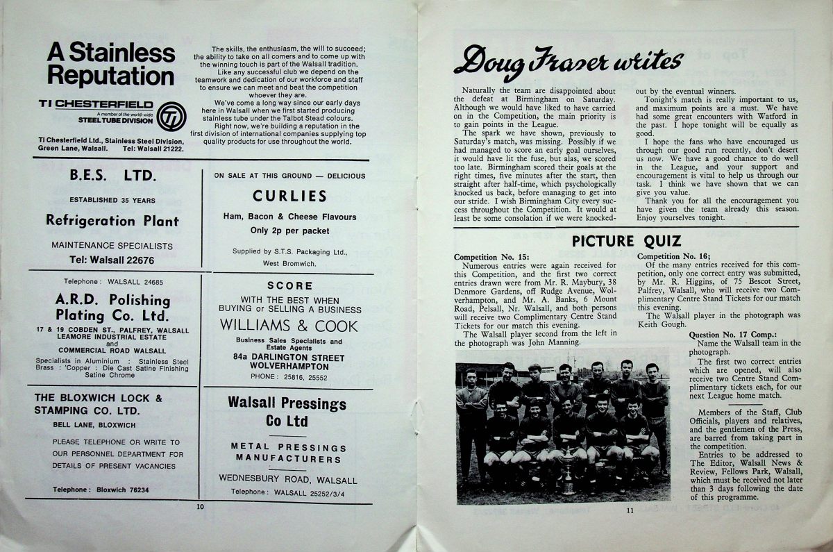 This was originally scheduled for Boxing Day 1968 but was postponed, however the original programme was still issued on the rearranged date. The game eventually took place on 30th April when a new programme was issued. We lost 2-1.