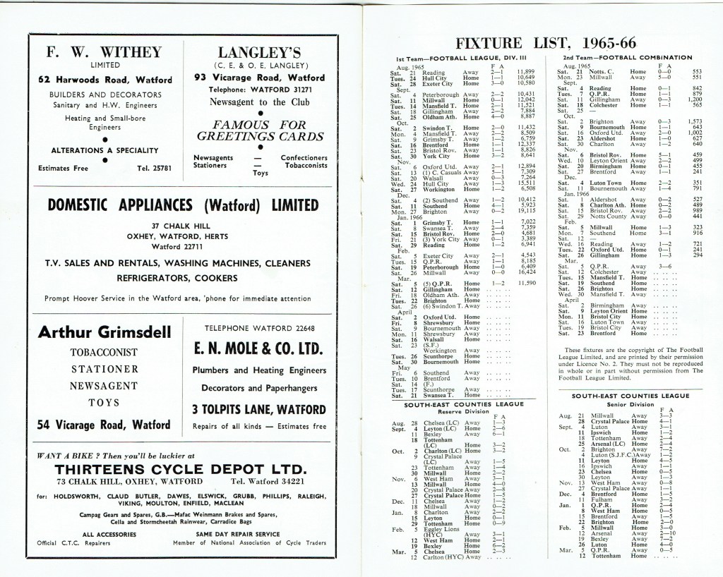 Taken from the programme on 17th January 2004- New Division One, Watford 1 Crystal Palace 5