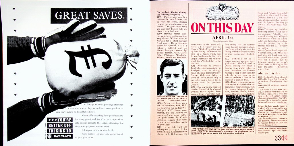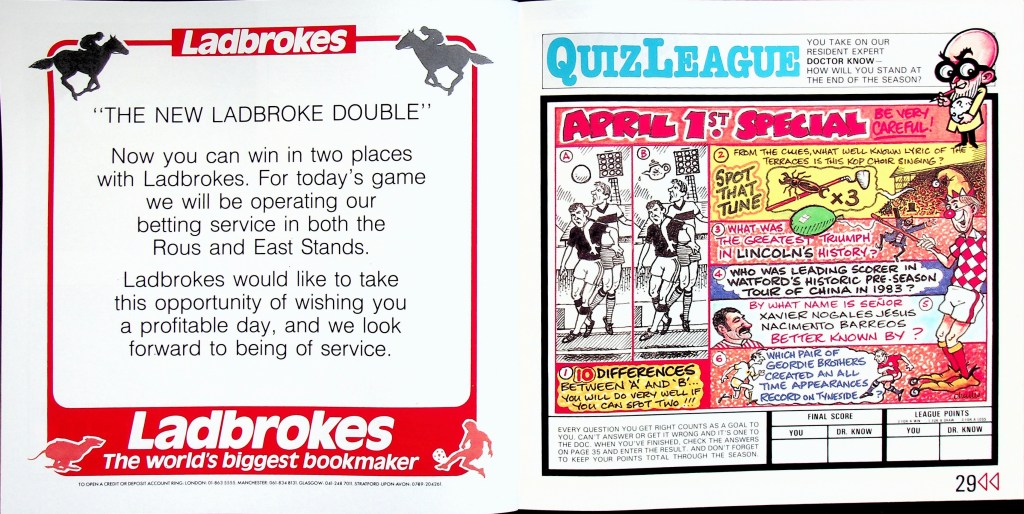 The second game of the double-header against Arsenal. We’d beaten them 2-0 at Highbury the previous day.