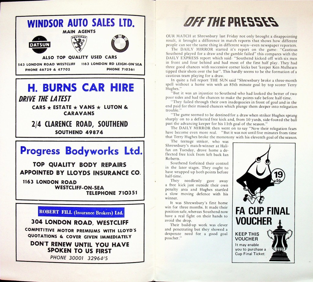 When we next play them it would be lovely if we could come up with a similar image for that leaflet that now masquerades as a programme featuring the 7-1, the 4-1 win in 1982, the Chris Nicholl nightmare in 1983, the 3-2 in 1999, the 5-2 in 2004 and the 5 consecutive wins against them from 2005-2008.