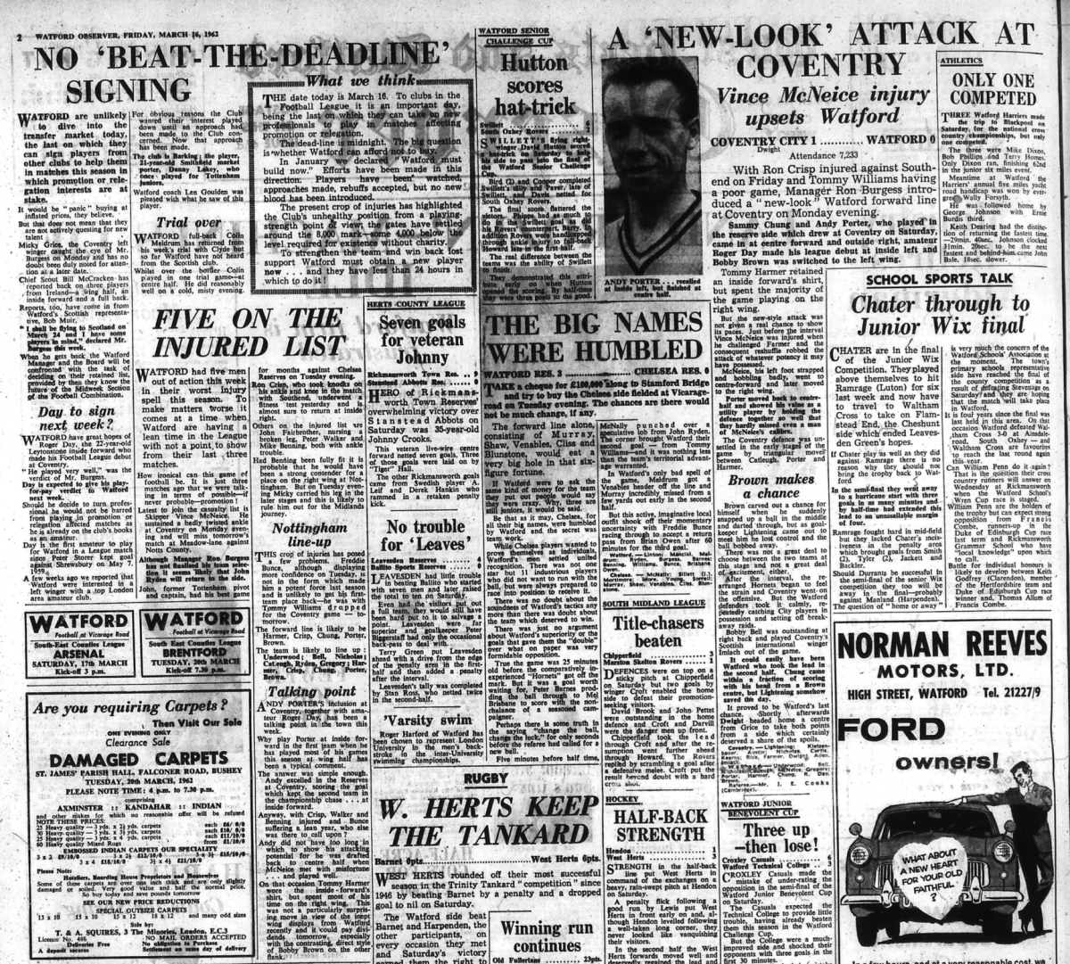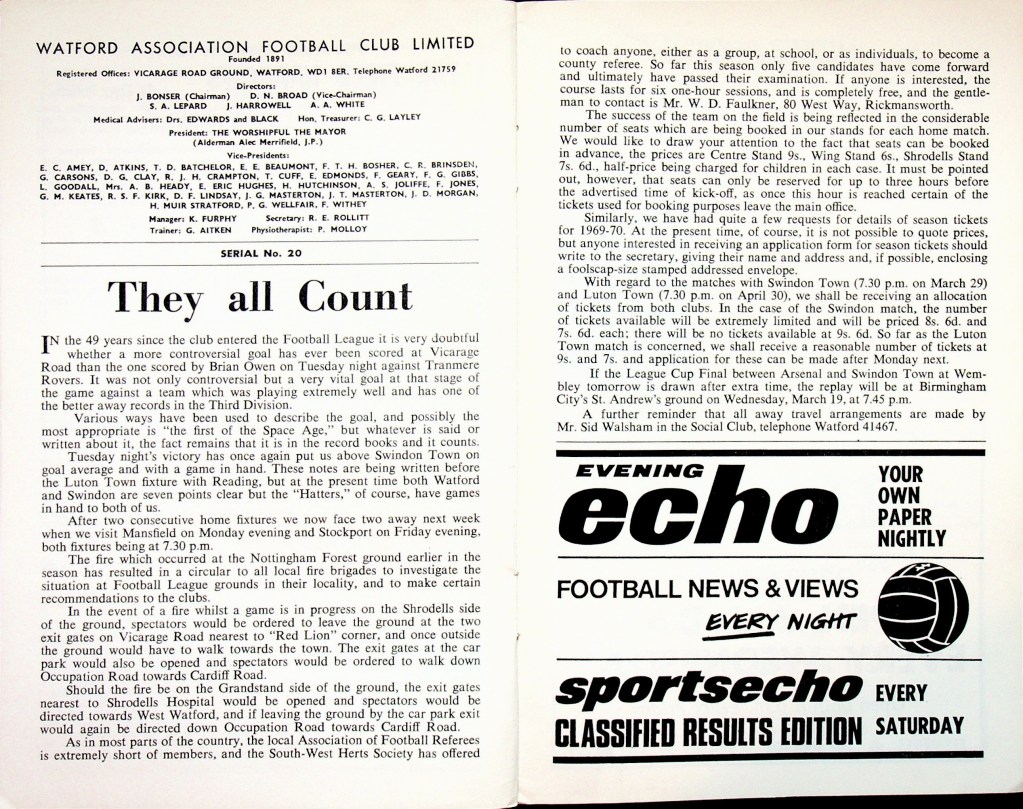 Steve Palmer, representing Ipswich Town in this match, scored the Hornets goal. He would join us four years later and would go on to score a further 8 times for Watford.