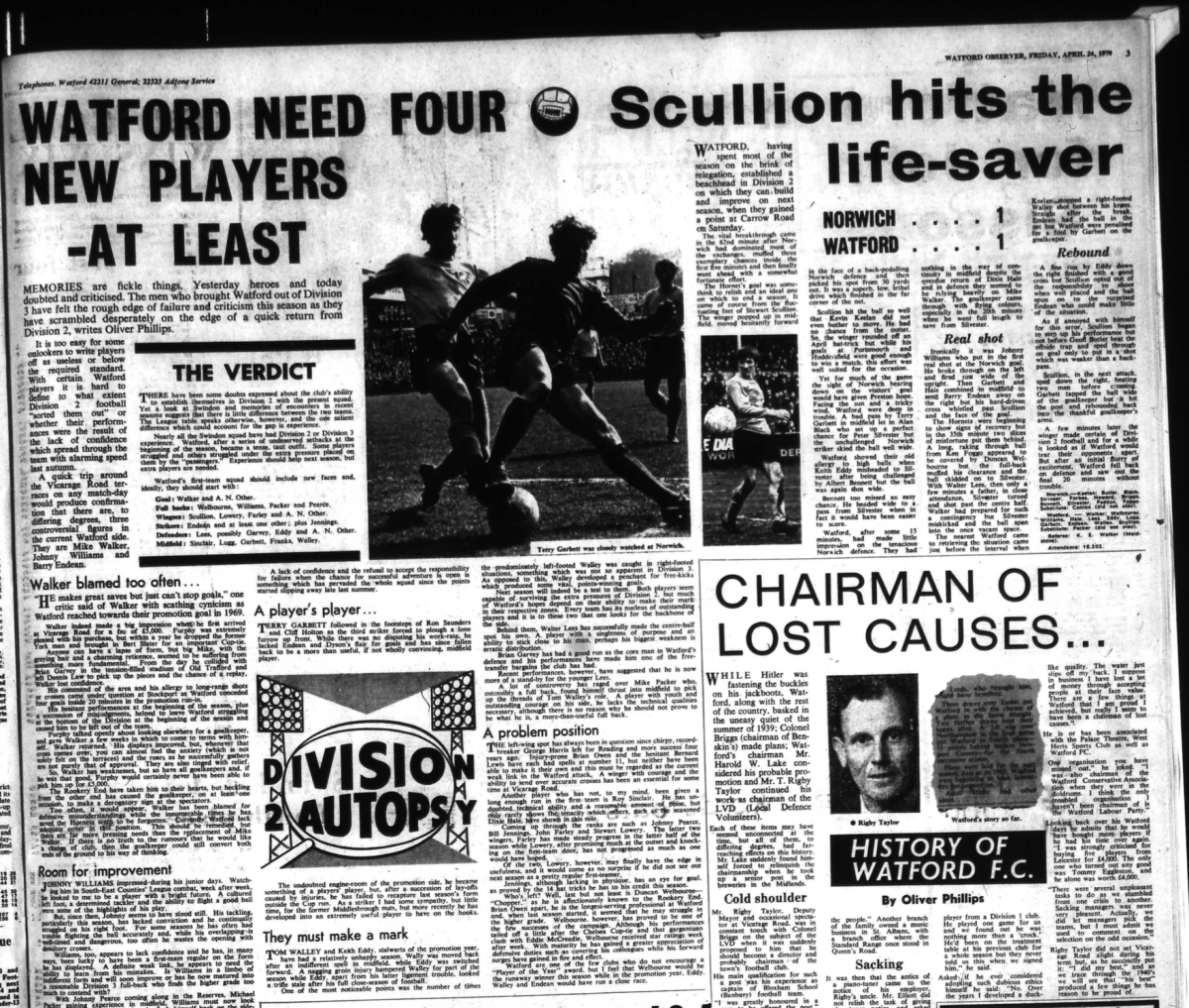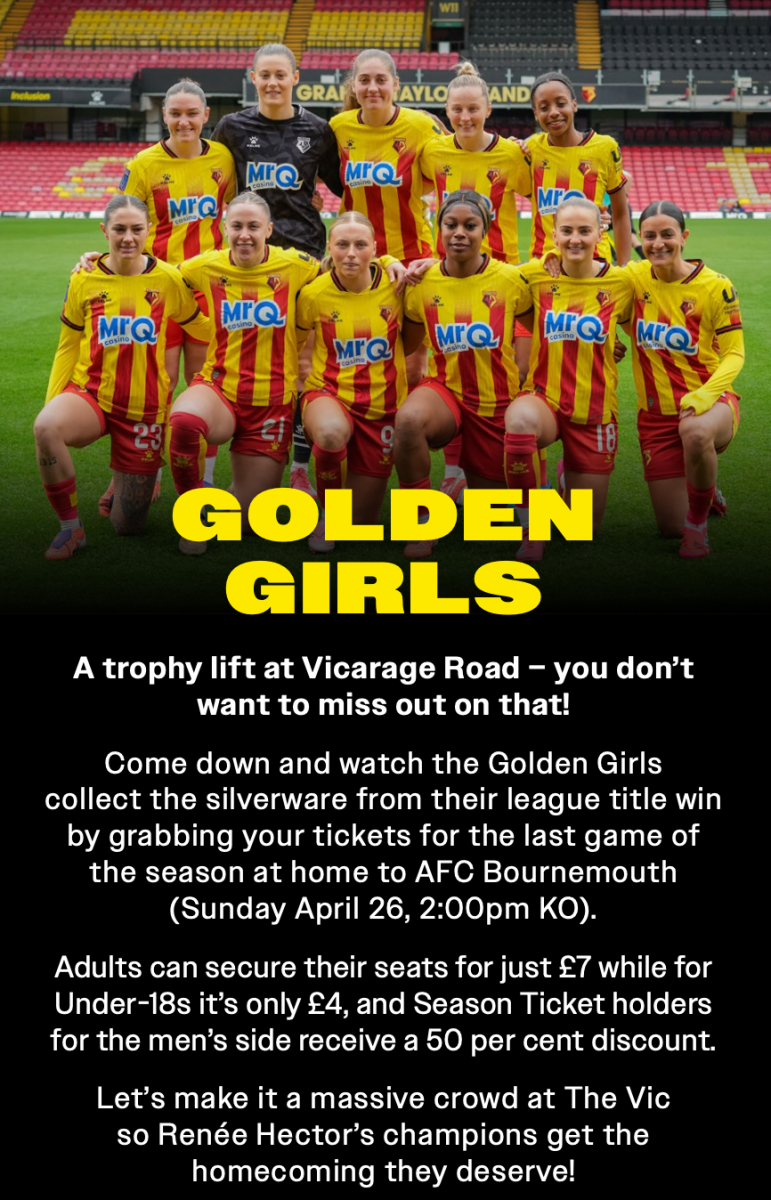 The lovely front cover image is rather spoilt by calling us Watford Town.