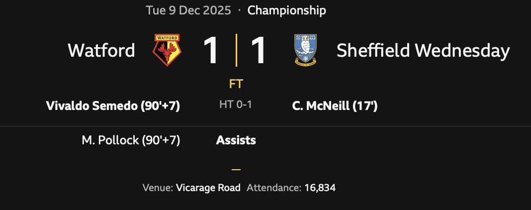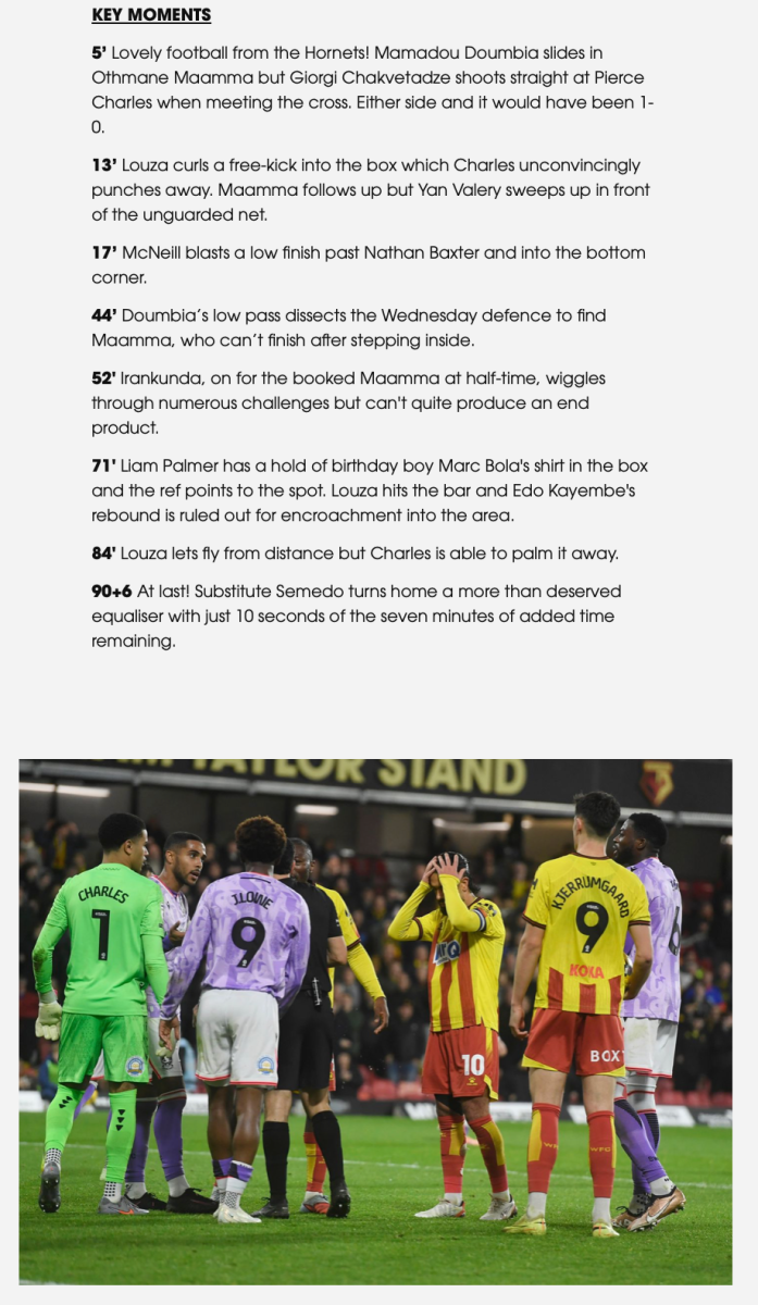 Watford Observer: MATCHDAY RECAP: Watford 1-1 Sheffield Wednesday