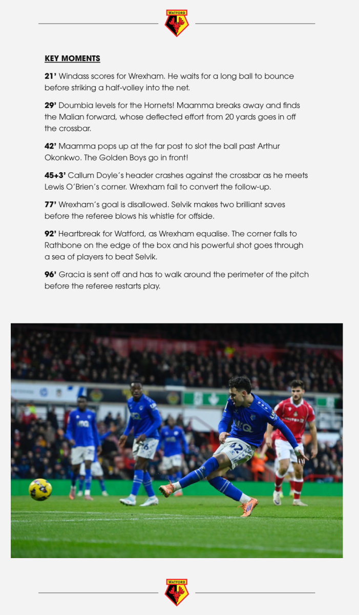 Watford Observer: MATCHDAY RECAP: Wrexham 2-2 Watford