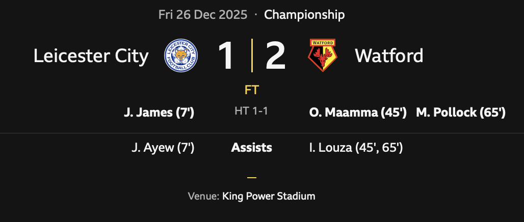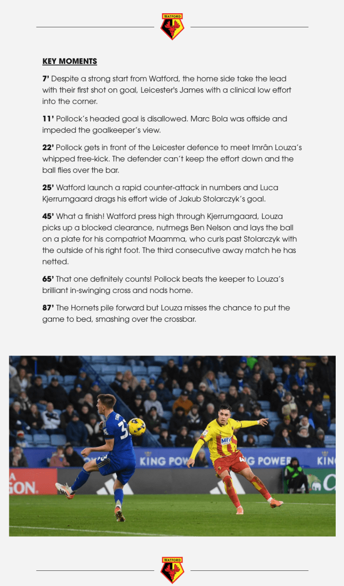 Watford Observer: MATCHDAY RECAP: Leicester City 1-2 Watford