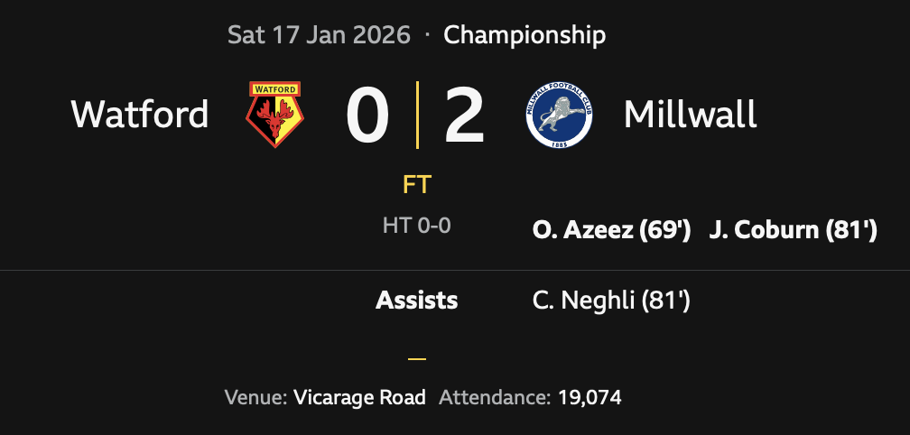 Watford Observer: MATCHDAY AS IT HAPPENED: Watford 0-2 Millwall