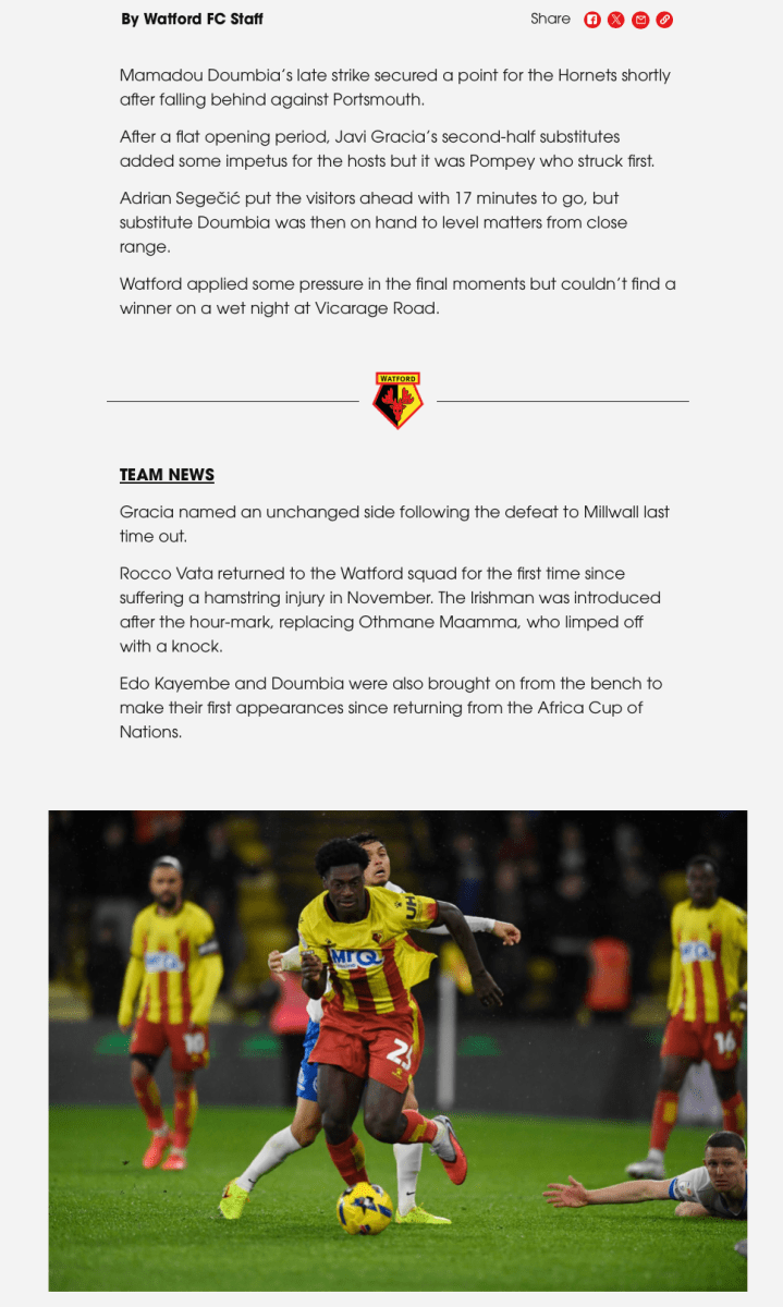 Watford Observer: MATCHDAY AS IT HAPPENED: Watford 1-1 Portsmouth
