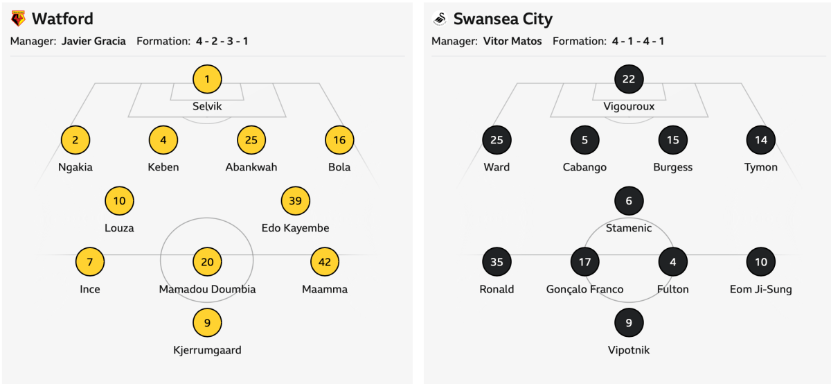 Match Report: Winless run extends to five as tame Watford beaten 2-0 by Swansea