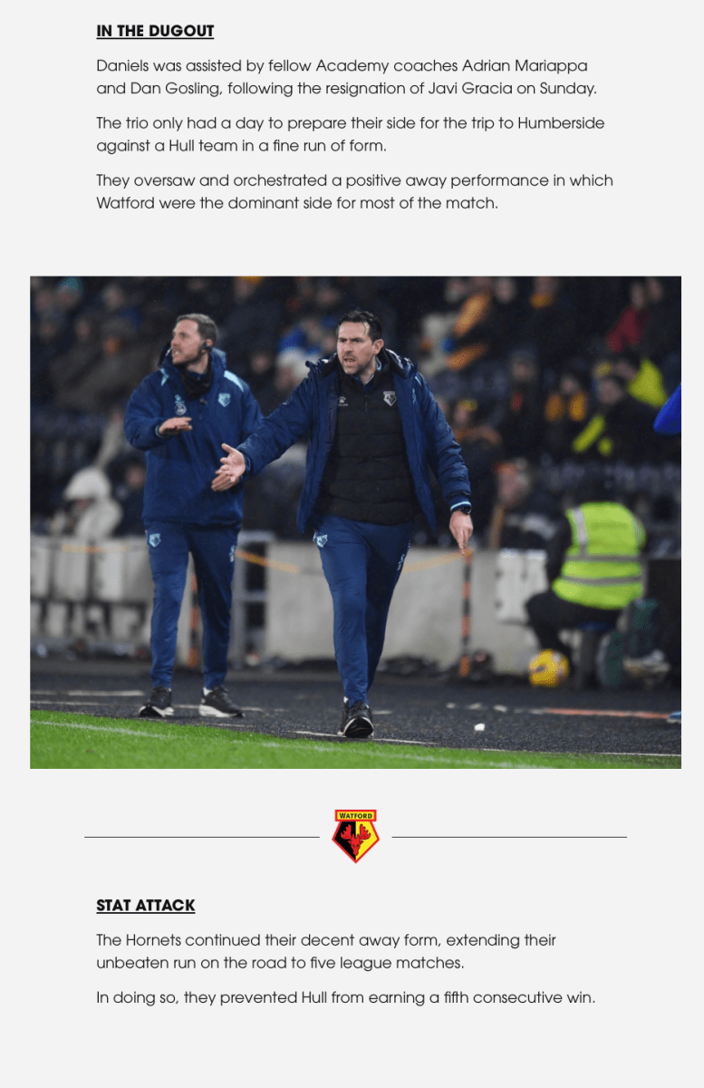 Match Report: Watford draw 0-0 at Hull City but impress under Daniels