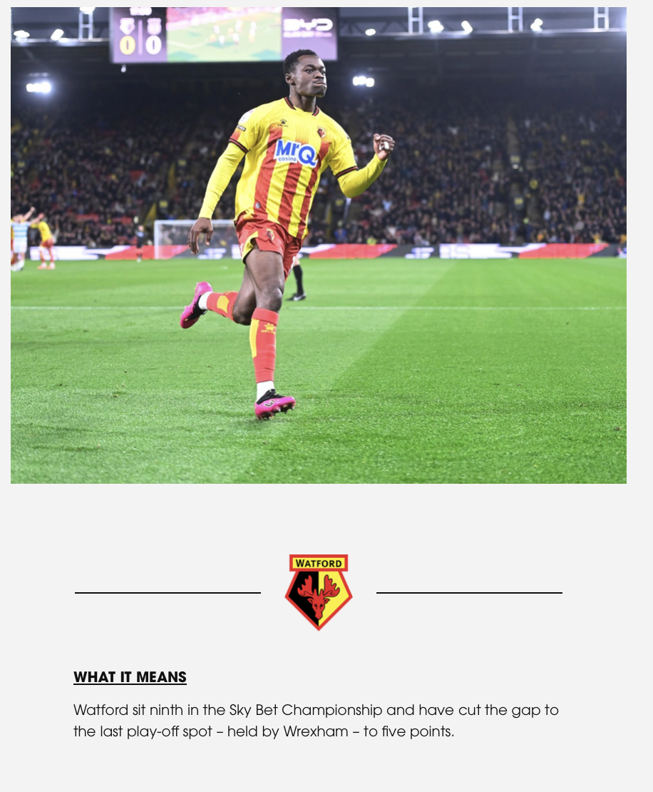 Still addresses the need for Watford to string wins together quickly
