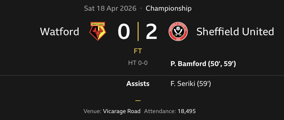 Match Report: Watford beaten 2-0 by Sheff Utd as lifeless season finale continues