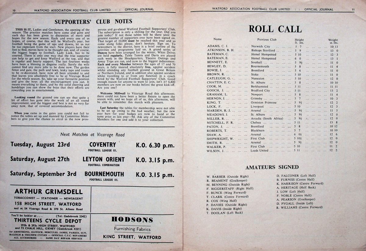 23rd August 1955- Division Three (South), Watford 2 Coventry City 1 Leave a Reply http://watford.fcdb.info?id=2067 Share this: Share on X (Opens in new window) X Share on Facebook (Opens in new window) Facebook