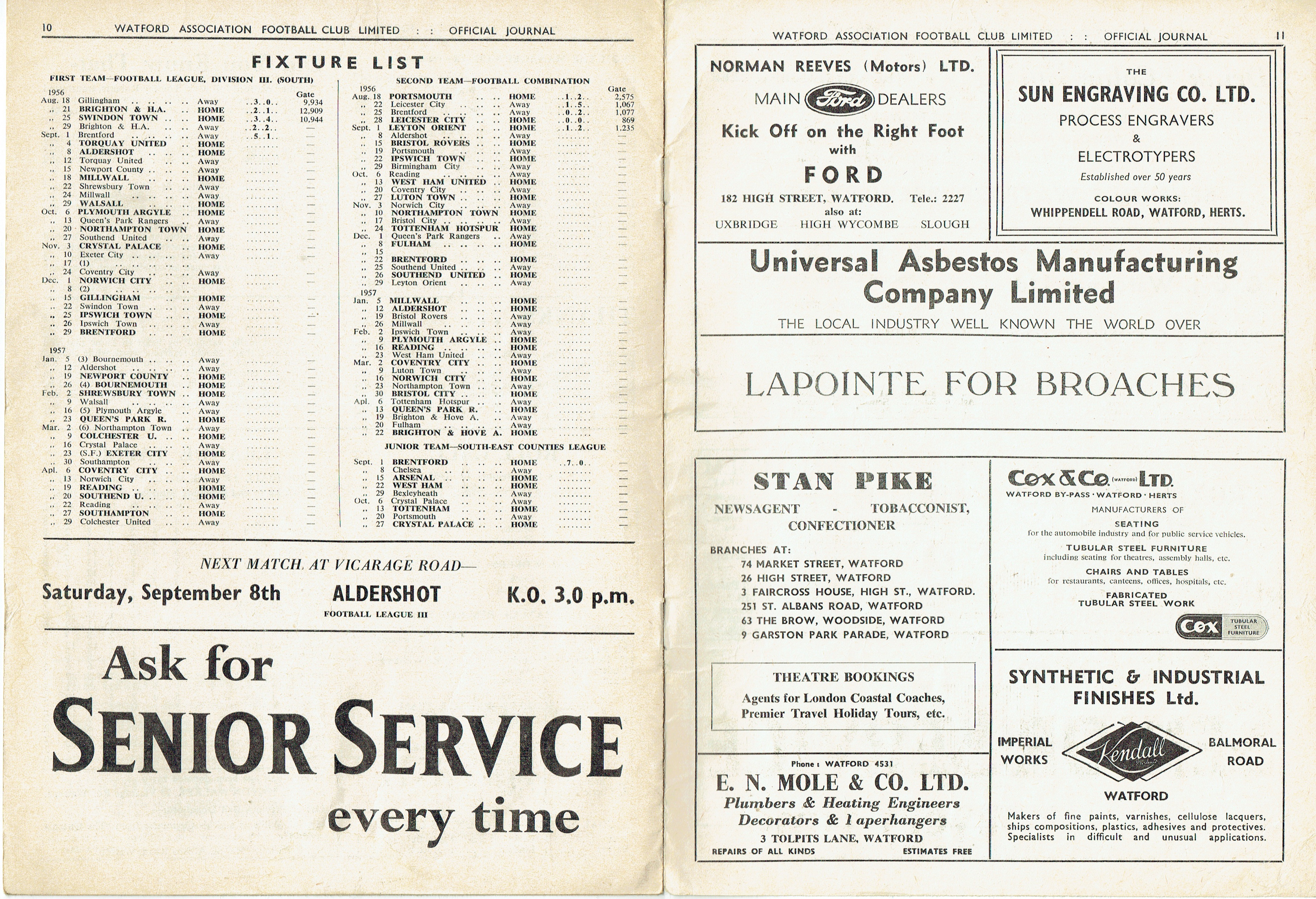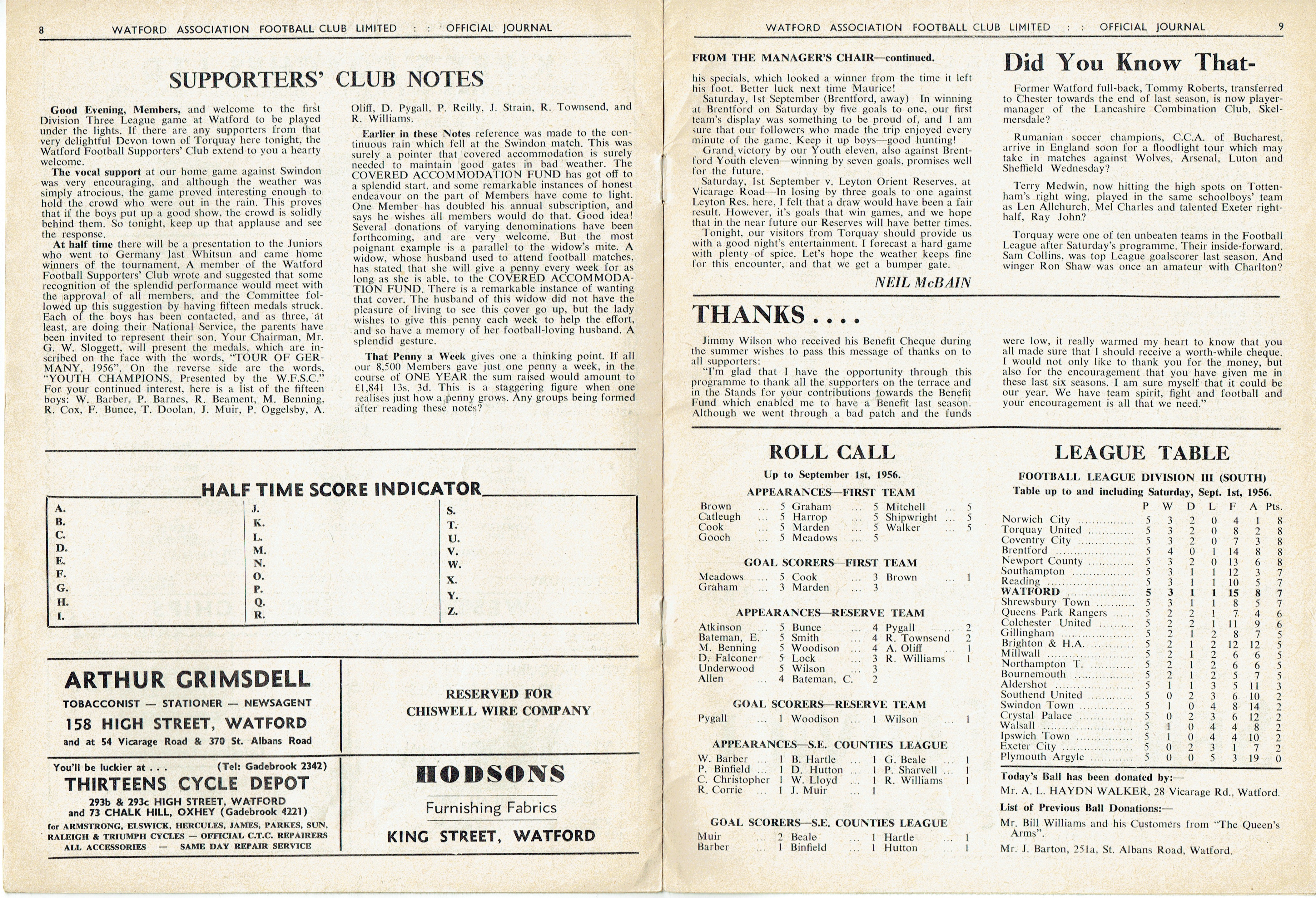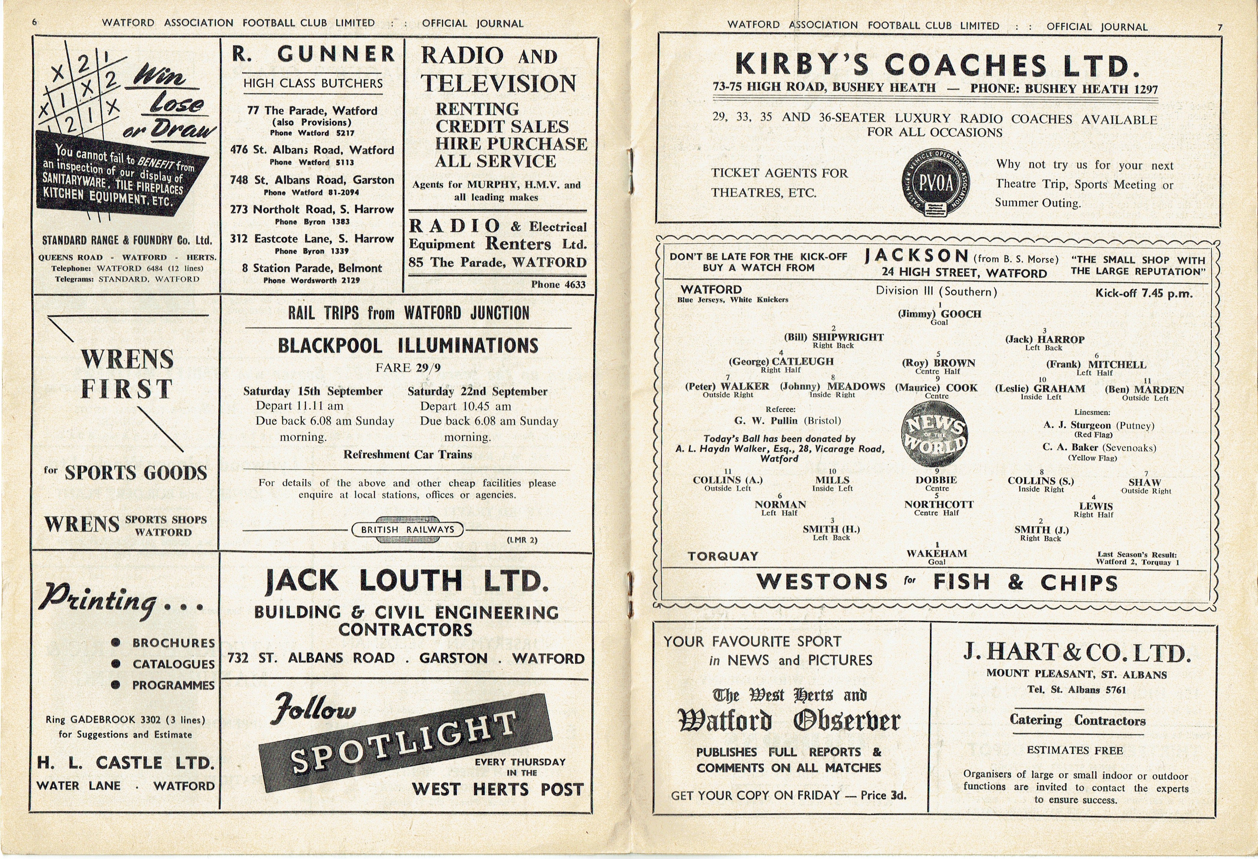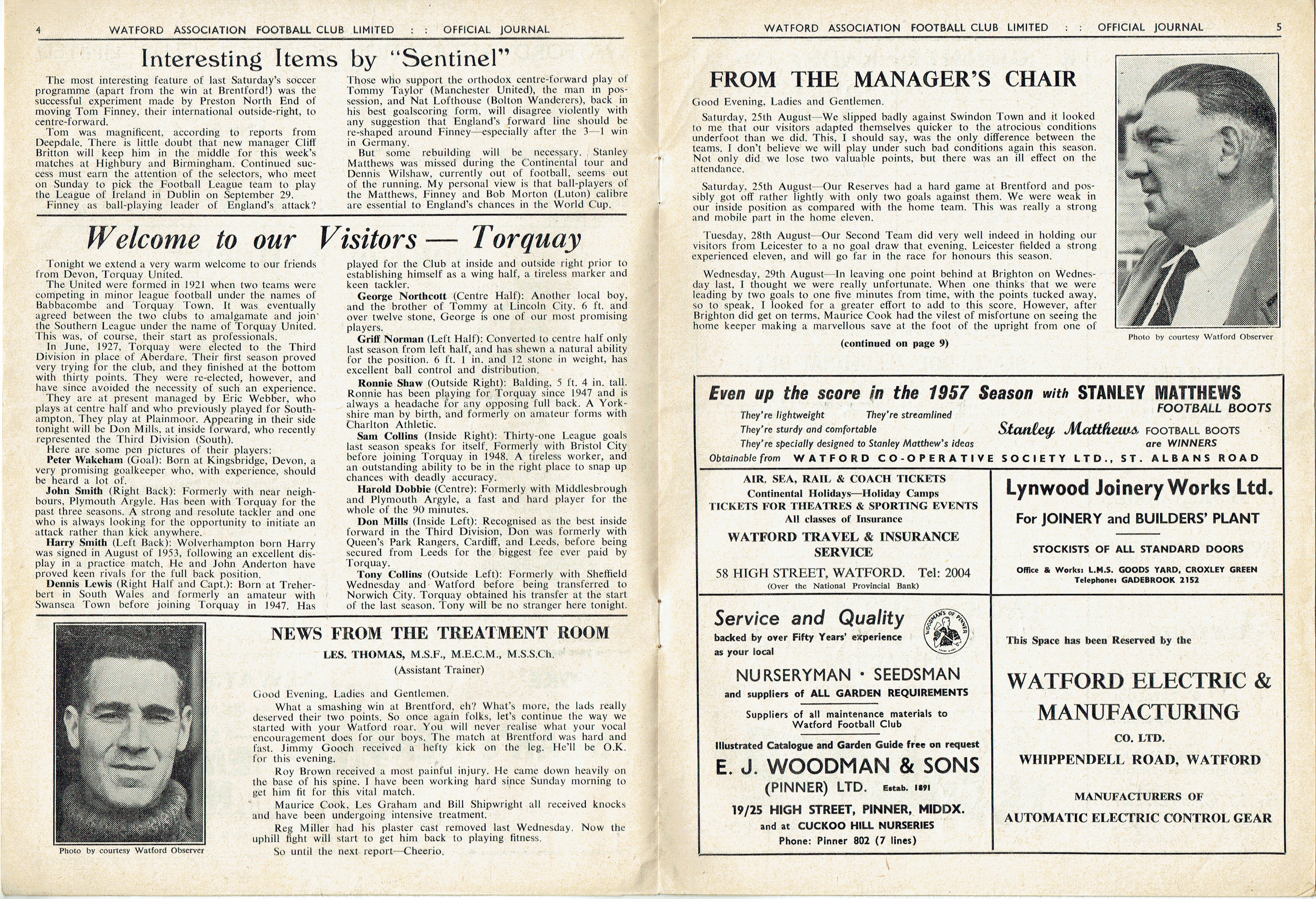 4th September 1956- Division Three (South), Watford 4 Torquay United 1 Leave a Reply http://watford.fcdb.info?id=2120 Share this: Share on X (Opens in new window) X Share on Facebook (Opens in new window) Facebook