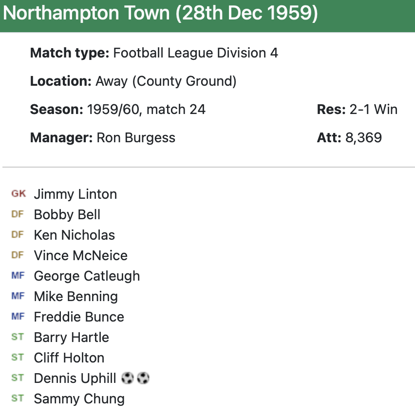 The attendance for this game was given as a very impressive 6,431 easily our highest in the Combination that season. It is possibly explained because the first team were away at Stockport that day , the reserves were top of the league and maybe that people wanted something else to do other than Christmas shopping.