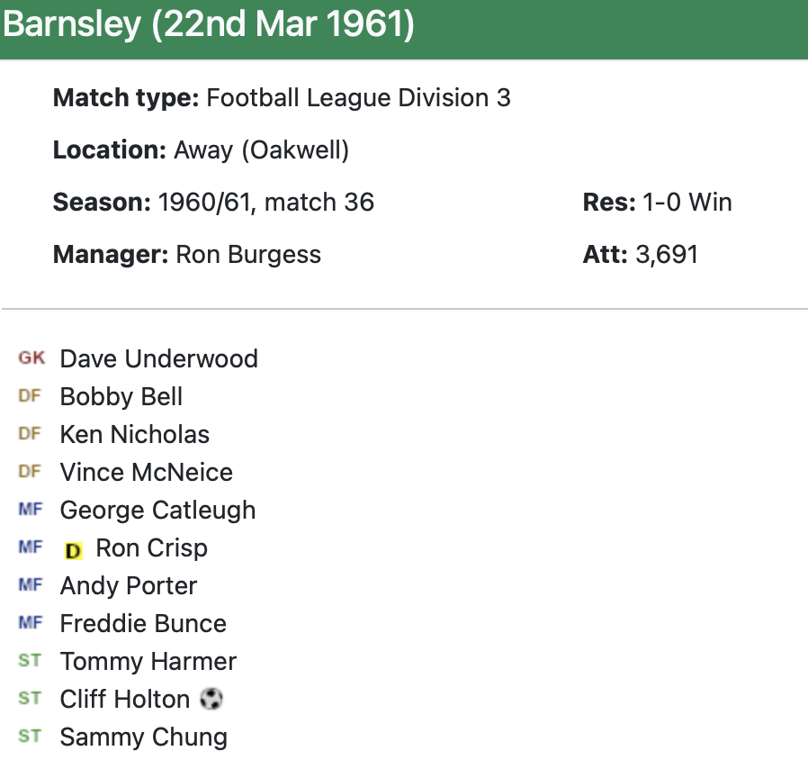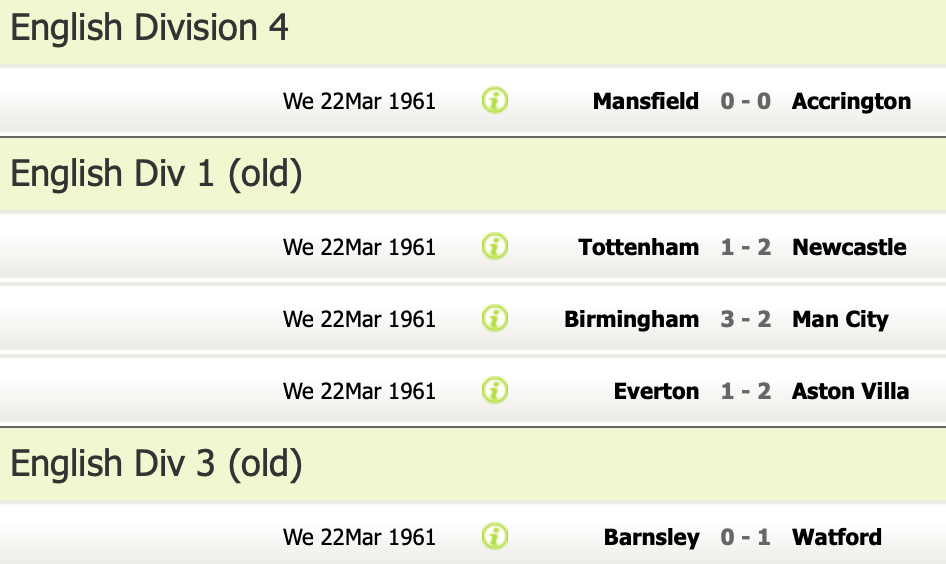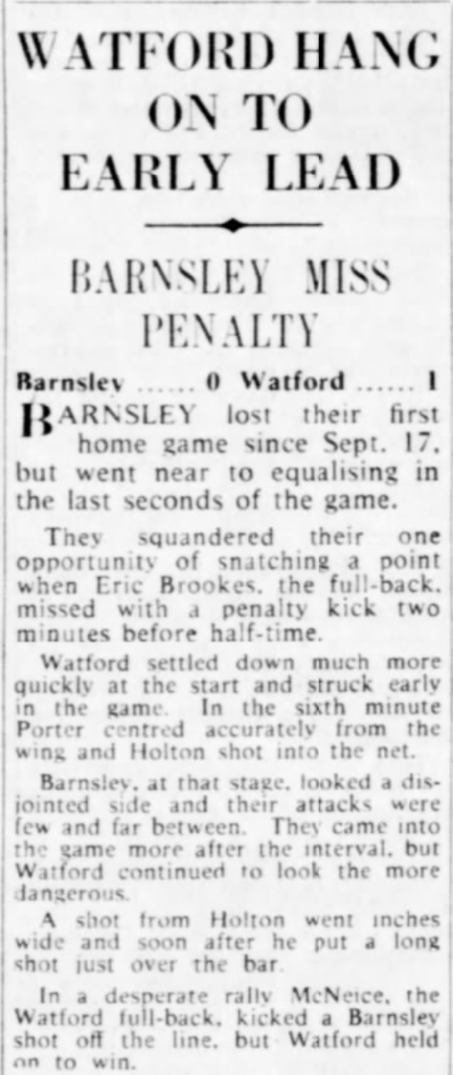 22nd March 1961- Division Three, Barnsley 0 Watford 1 http://watford.fcdb.info/index.php?page=matches Watford Observer match report https://www.soccerbase.com/matches/results.sd?date=1961-03-22 https://www.11v11.com/league-tables/league-division-three/22-march-1961/ Share this: Click to share on X (Opens in new window) X Click to share on Facebook (Opens in new window) Facebook