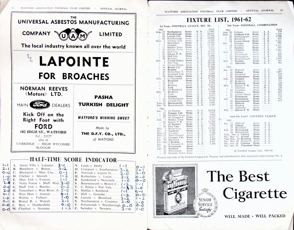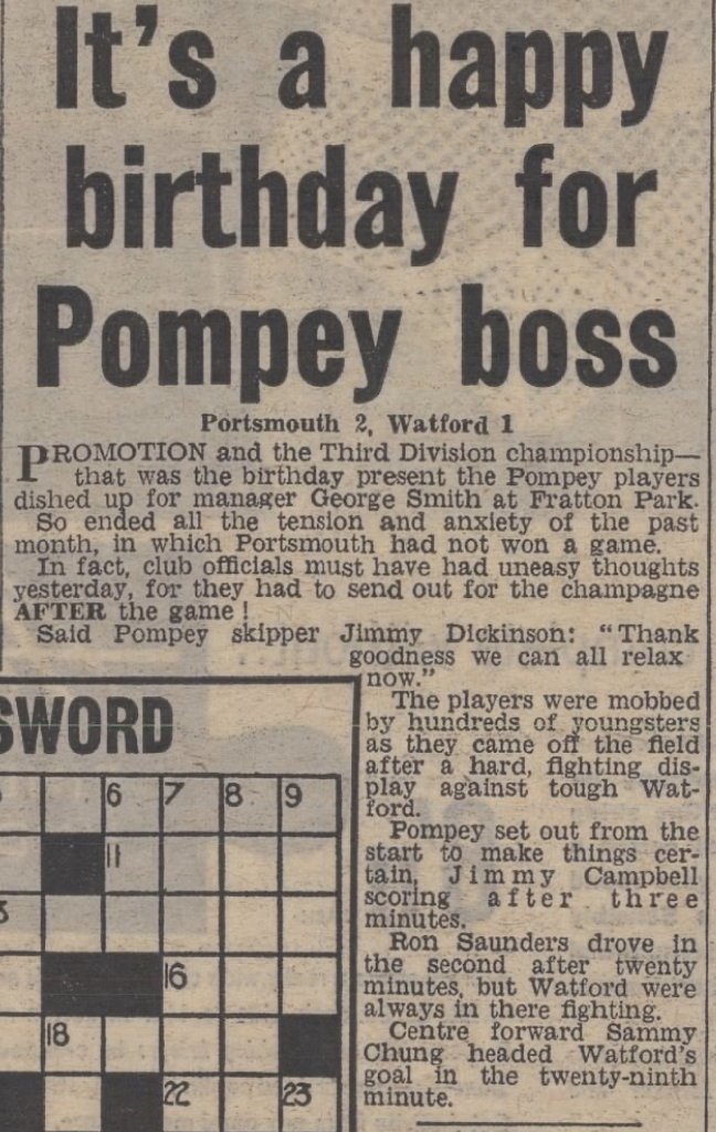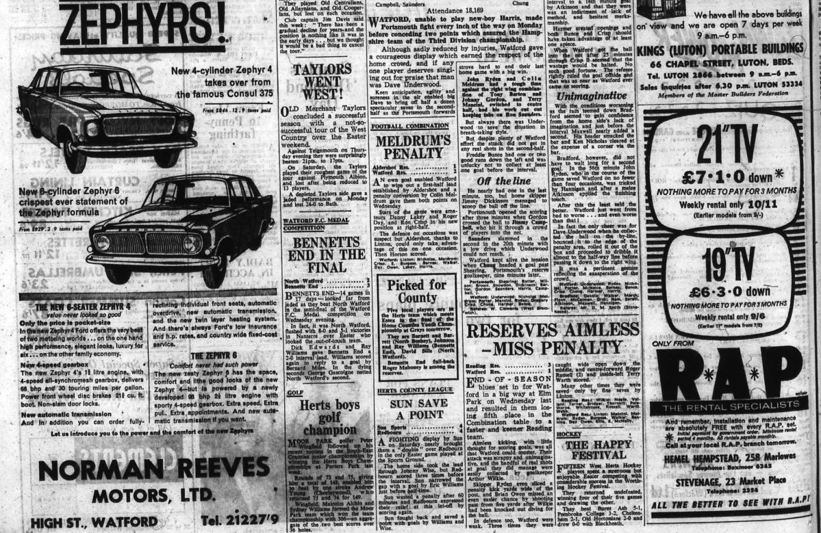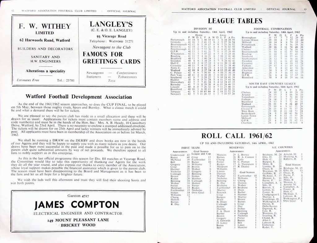 23rd April 1962- Division Three, Portsmouth 2 Watford 1