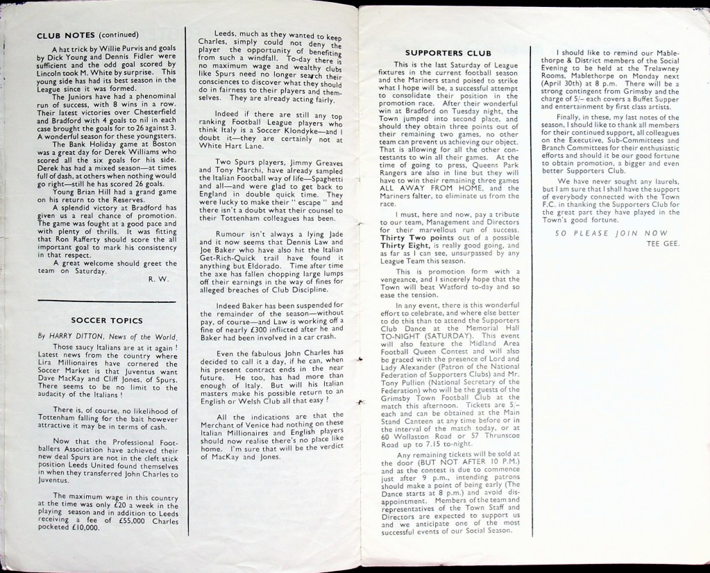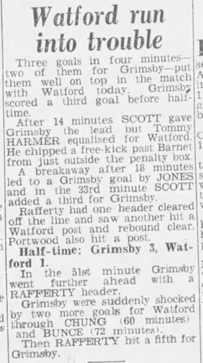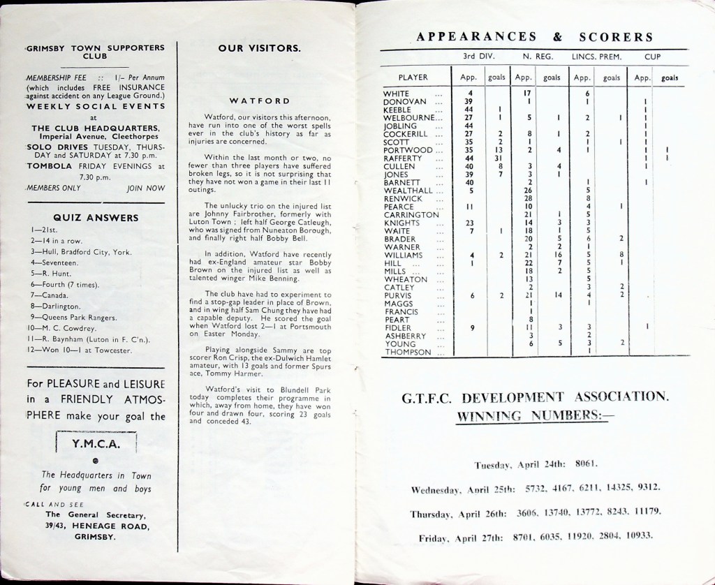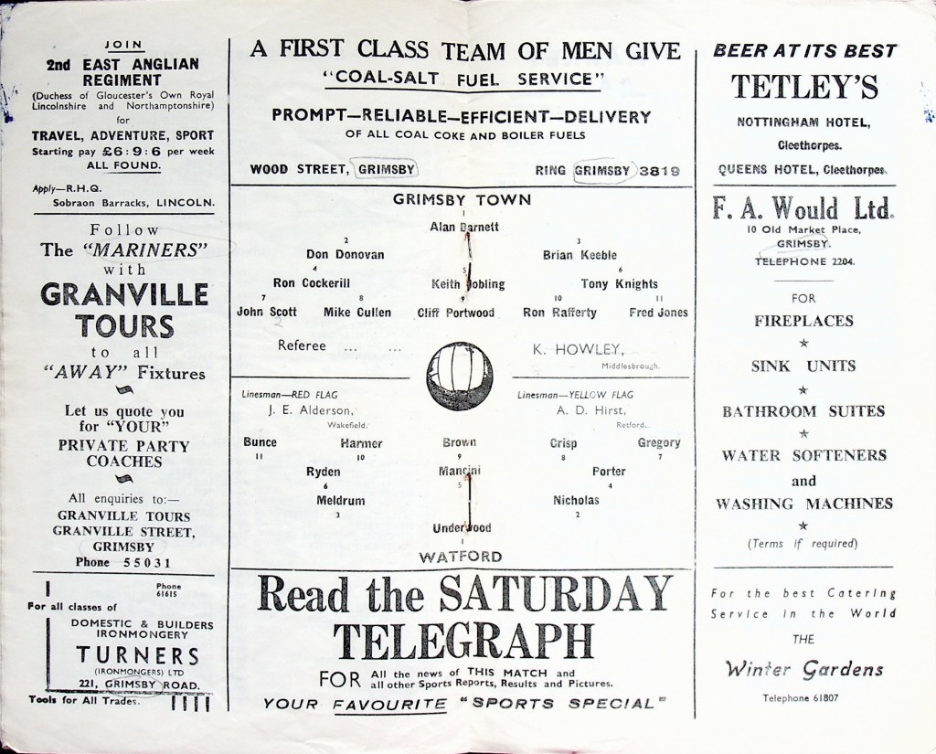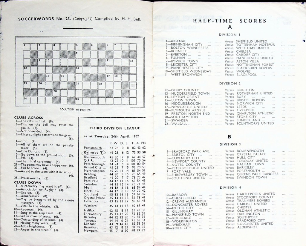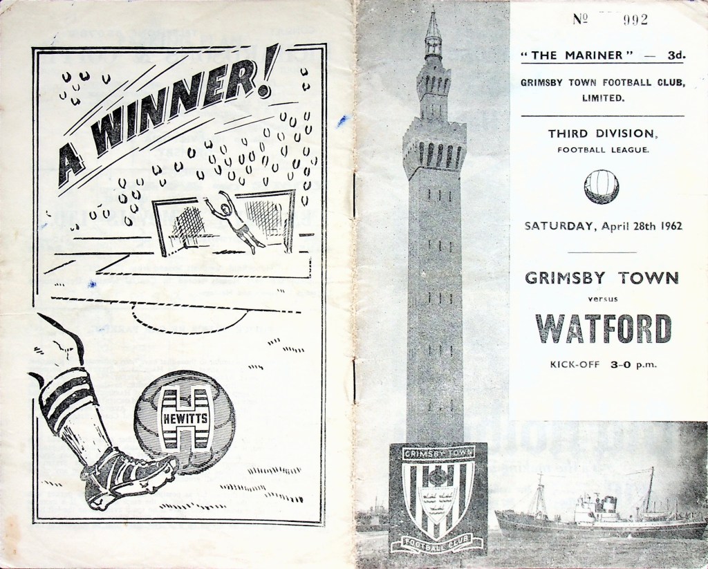 28th April 1962- Division Three, Grimsby Town 5 Watford 3