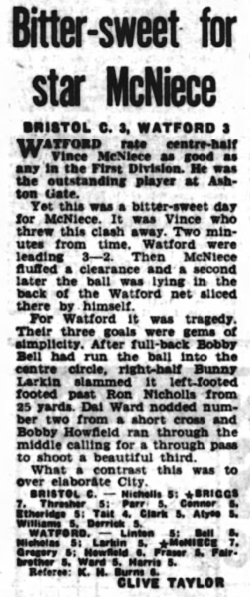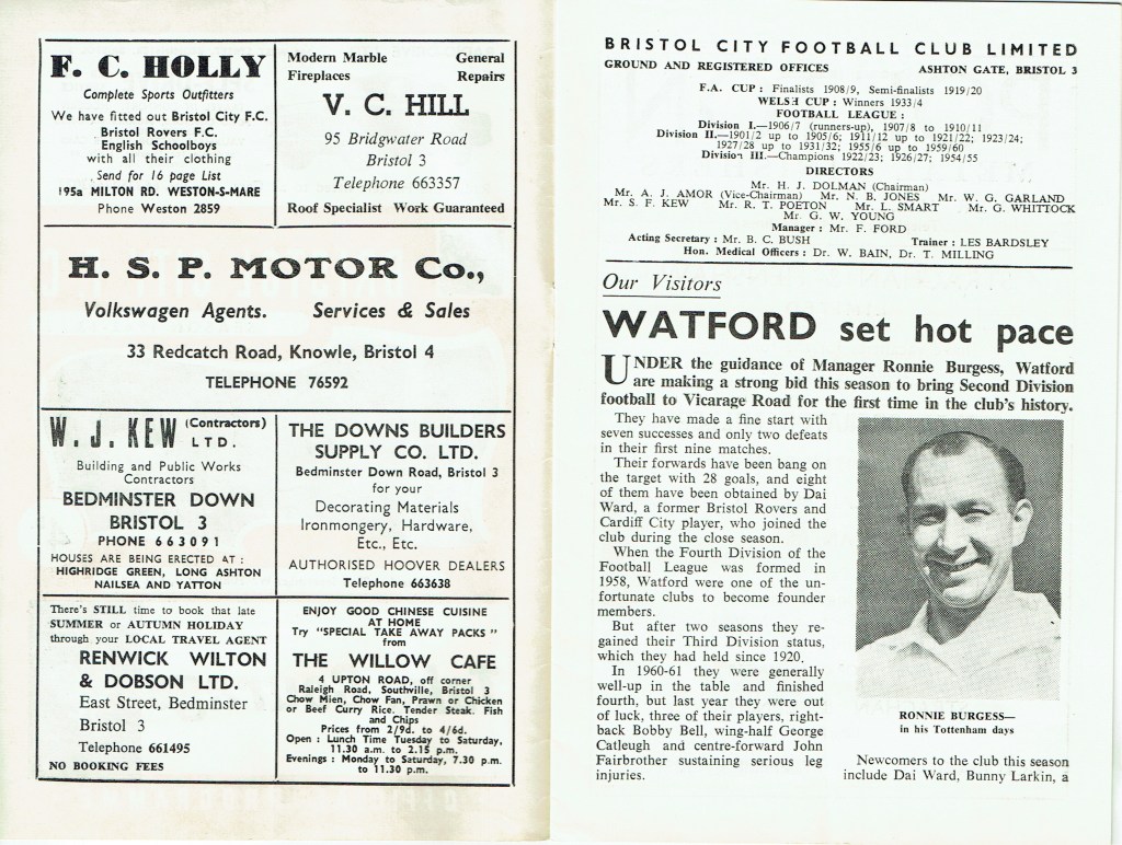 22nd September 1962- Division Three, Bristol City 3 Watford 3 Leave a Reply http://watford.fcdb.info?id=2438 Sunday People, 23 Sep 1962 Watford Observer match report Share this: Share on X (Opens in new window) X Share on Facebook (Opens in new window) Facebook