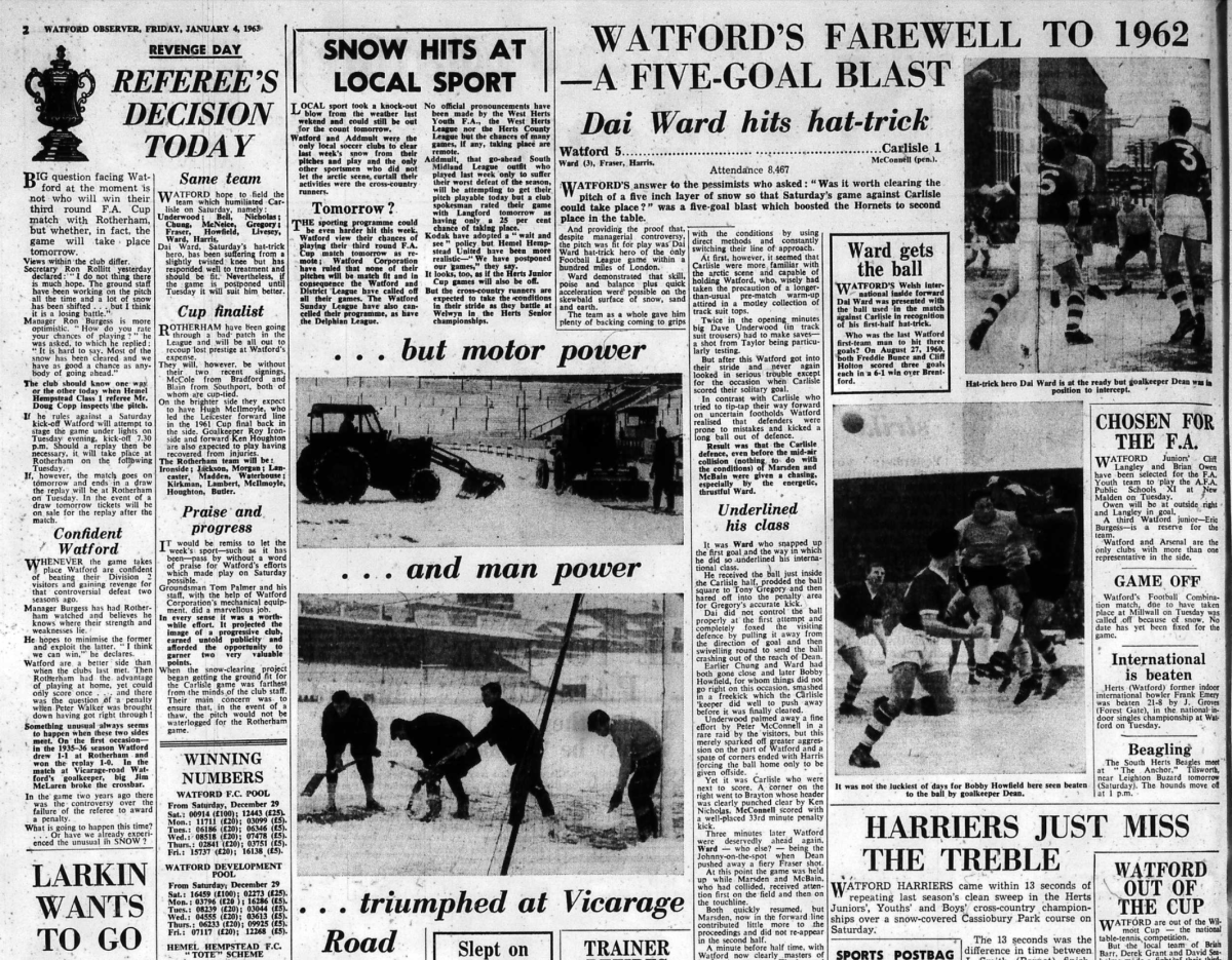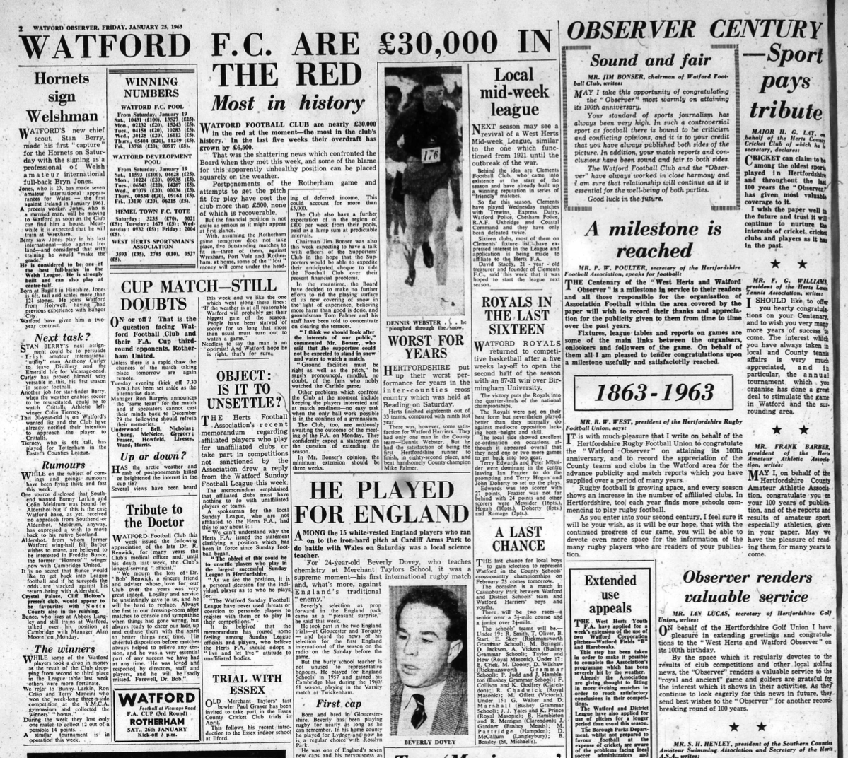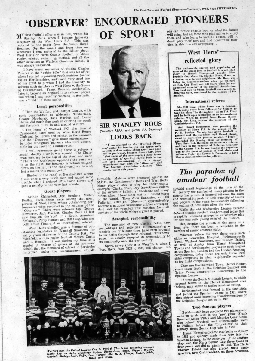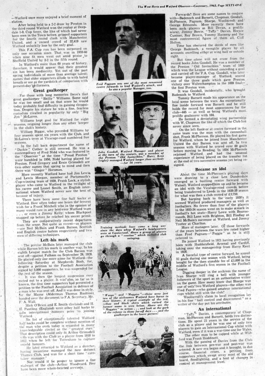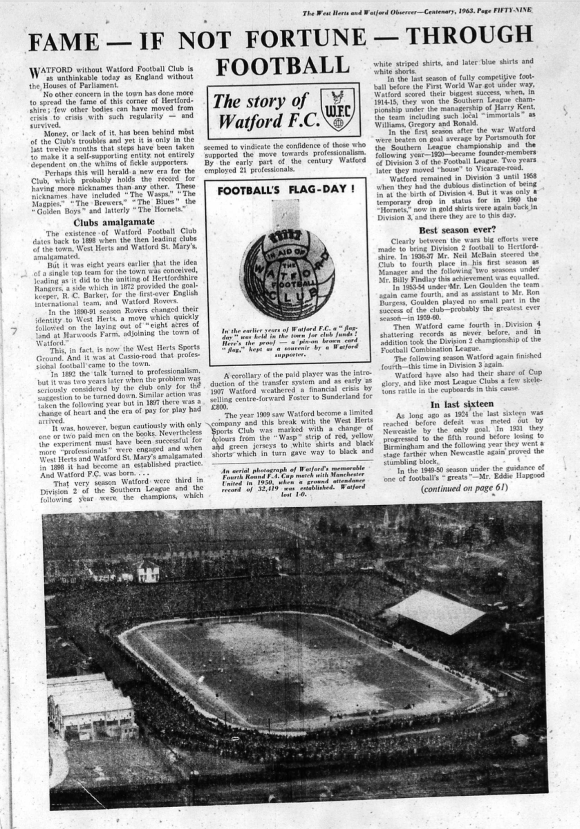 This was the centenary issue of the Watford Observer and a supplement accompanied the newspaper looking at various aspects of how Watford had changed over the last 100 years including, of course, Watford FC.