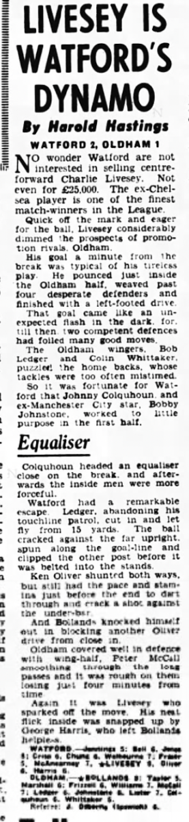 8th February 1964- Division Three, Watford 2 Oldham Athletic 1 Leave a Reply http://watford.fcdb.info/index.php?page=matches Sunday People, 9 Feb 1964 Watford Observer match report Share this: Share on X (Opens in new window) X Share on Facebook (Opens in new window) Facebook