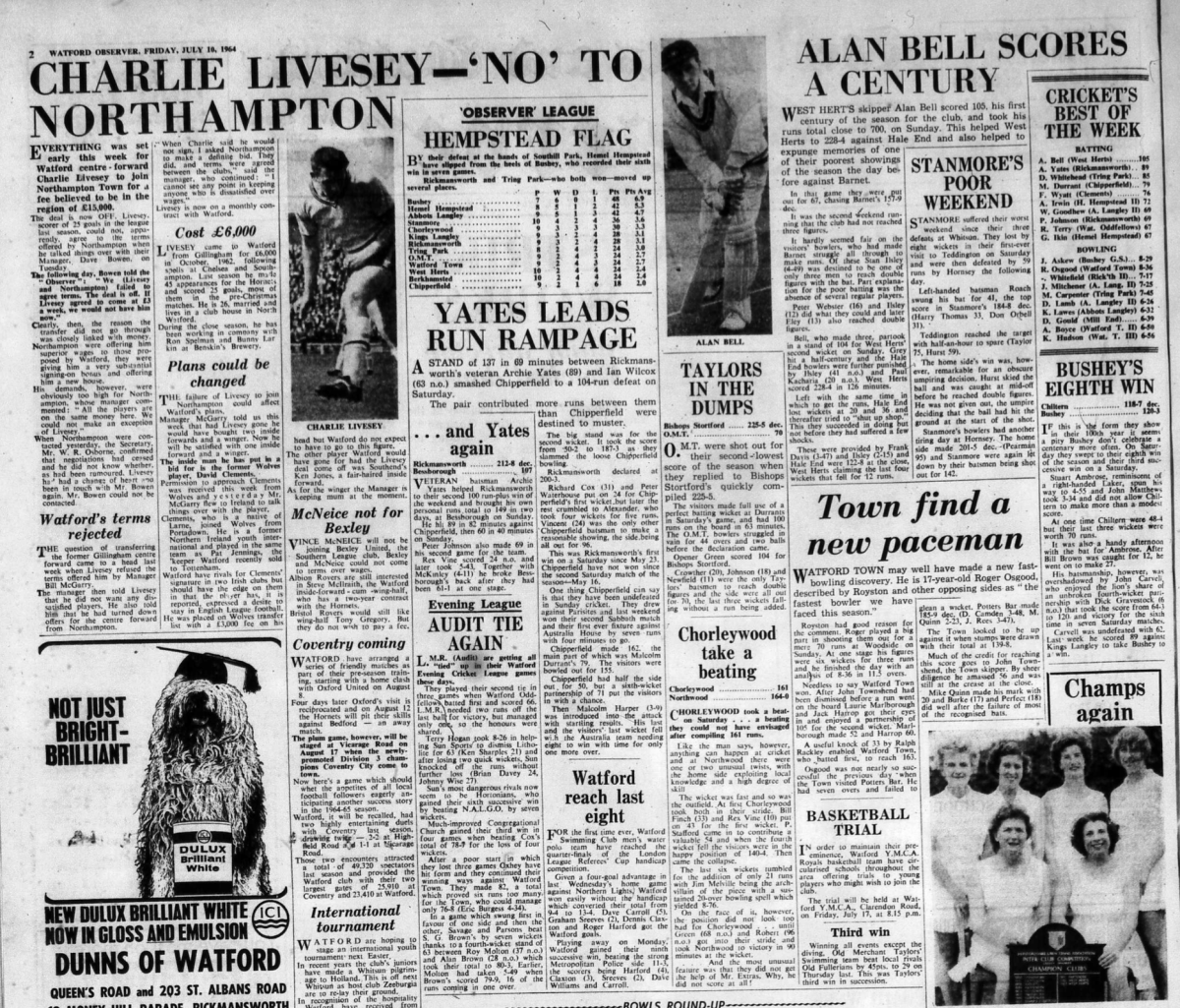 10th July 1964- Watford Observer Share this: Share on X (Opens in new window) X Share on Facebook (Opens in new window) Facebook
