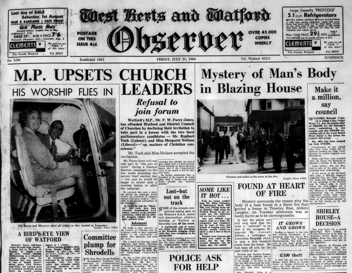 31st July 1964- Watford Observer Share this: Share on X (Opens in new window) X Share on Facebook (Opens in new window) Facebook