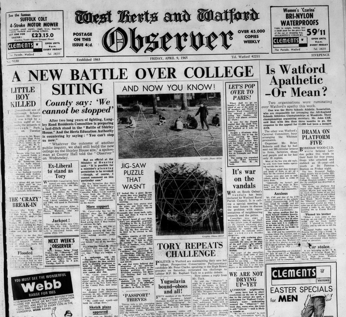 9th April 1965- Watford Observer Share this: Share on X (Opens in new window) X Share on Facebook (Opens in new window) Facebook