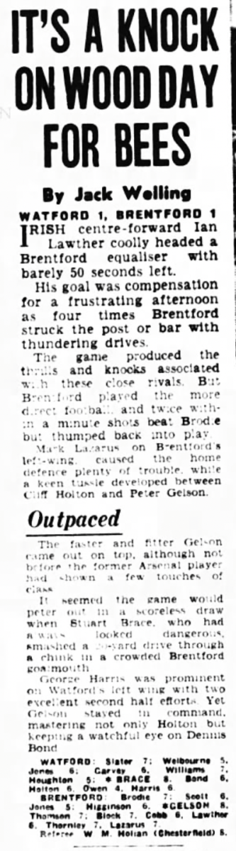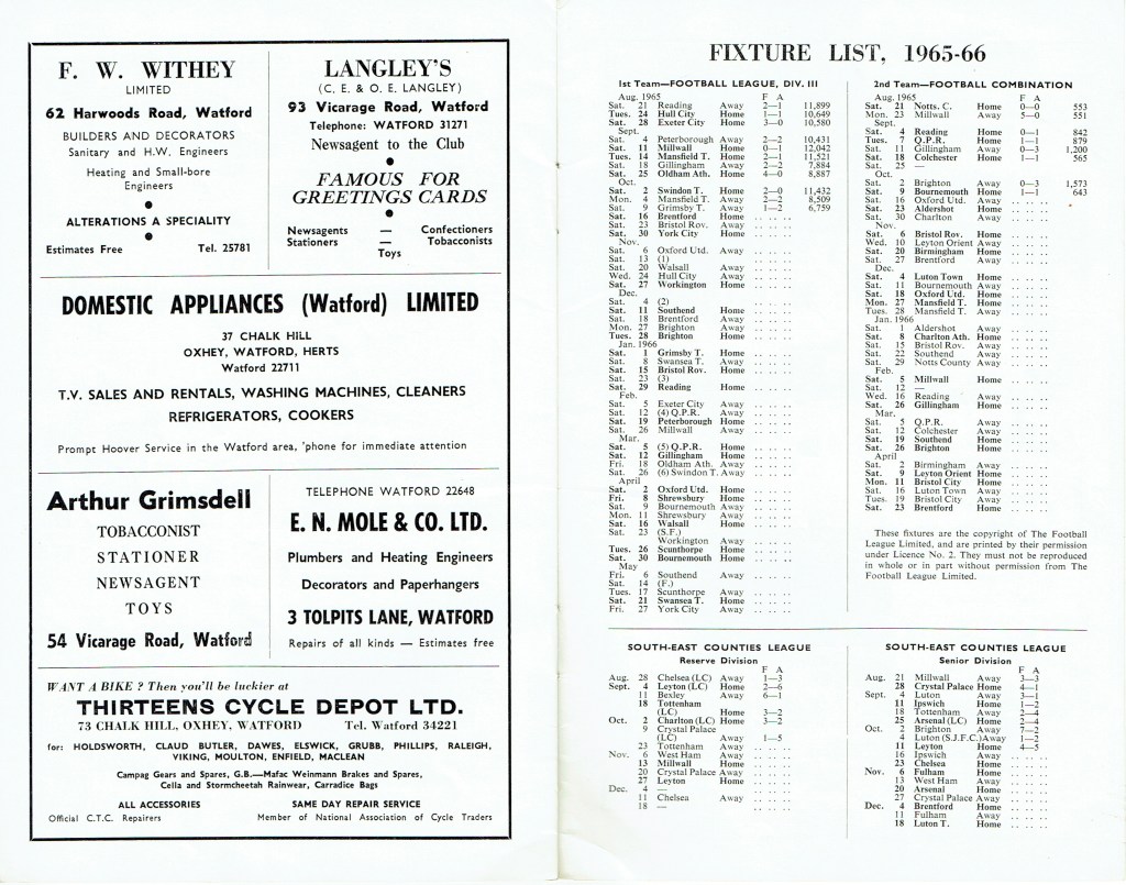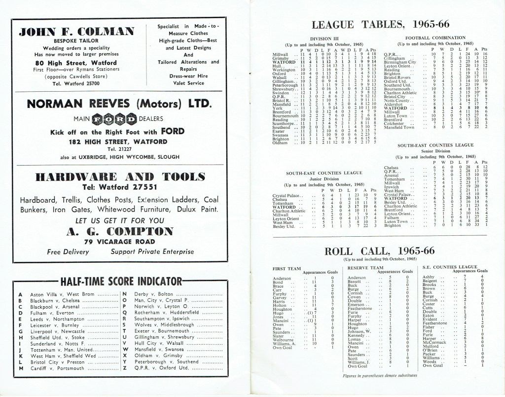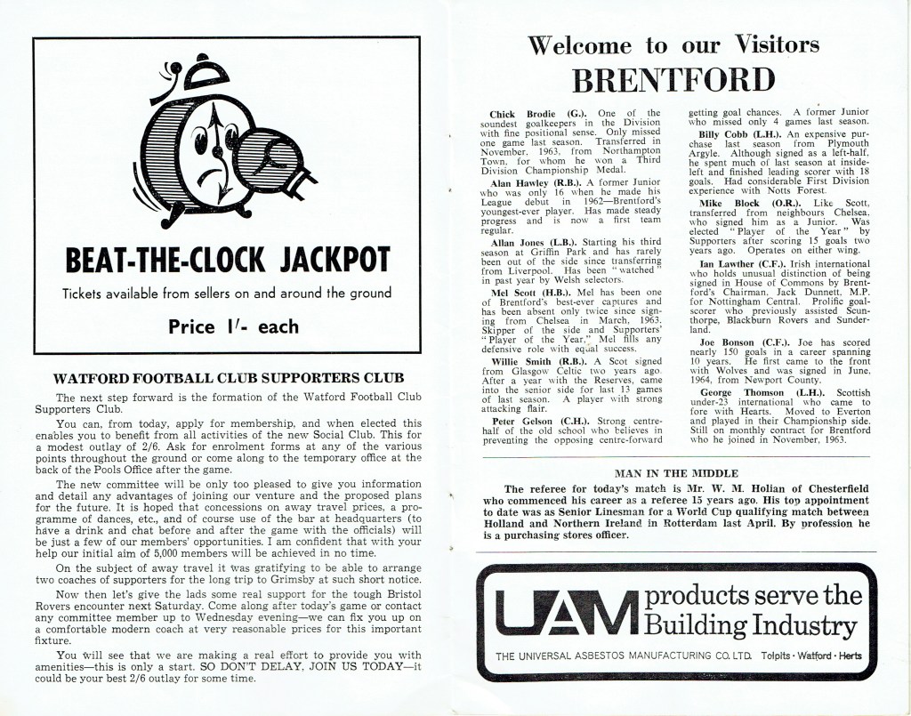 16th October 1965- Division Three, Watford 1 Brentford 1 Leave a Reply http://watford.fcdb.info?s=31974&id=2590 Sunday People, 17 Oct 1965 Watford Observer match report Share this: Share on X (Opens in new window) X Share on Facebook (Opens in new window) Facebook