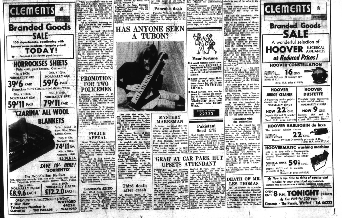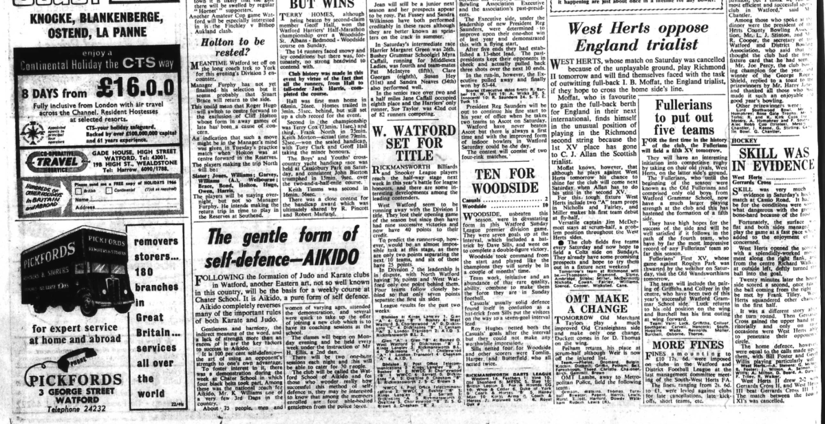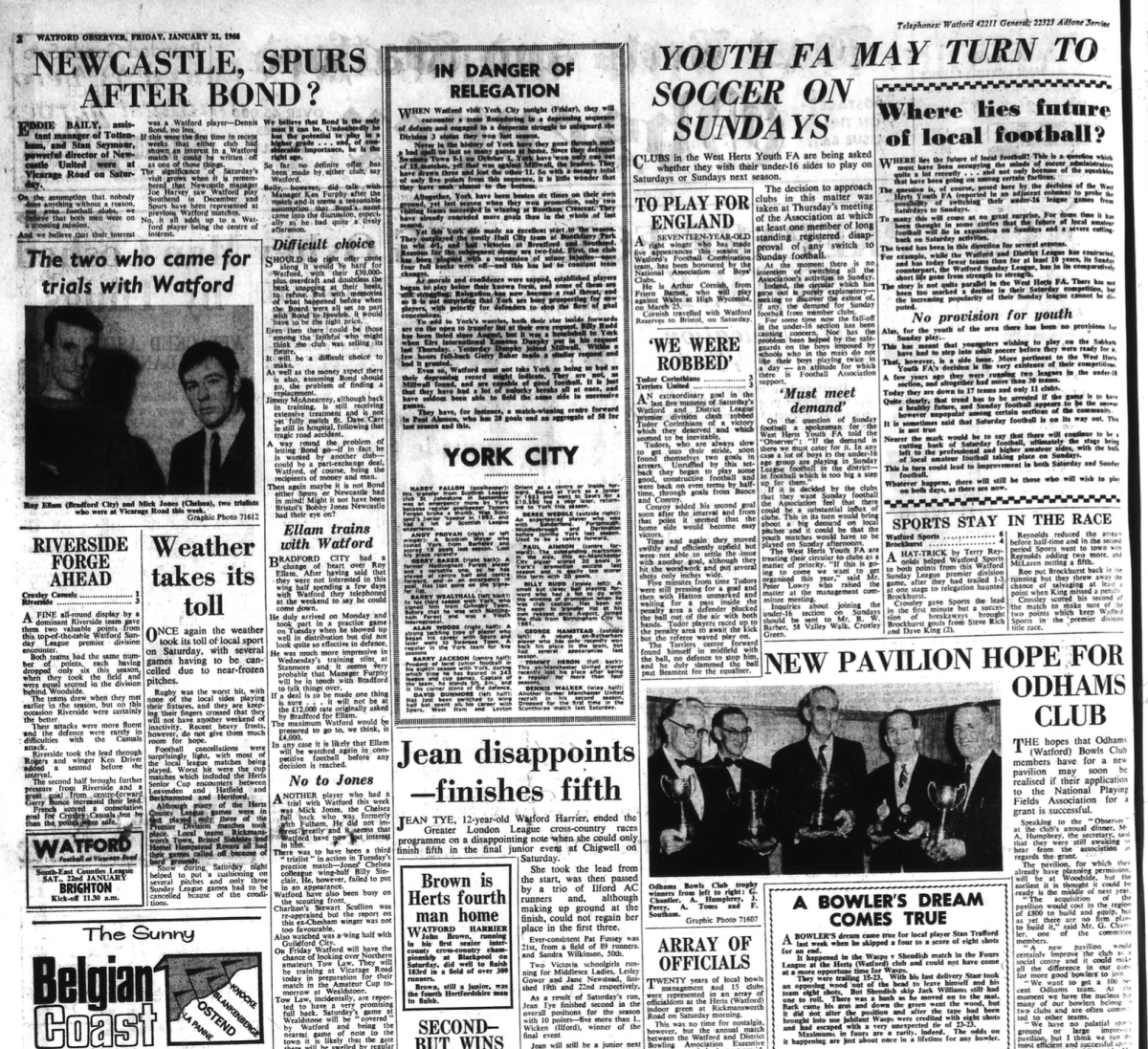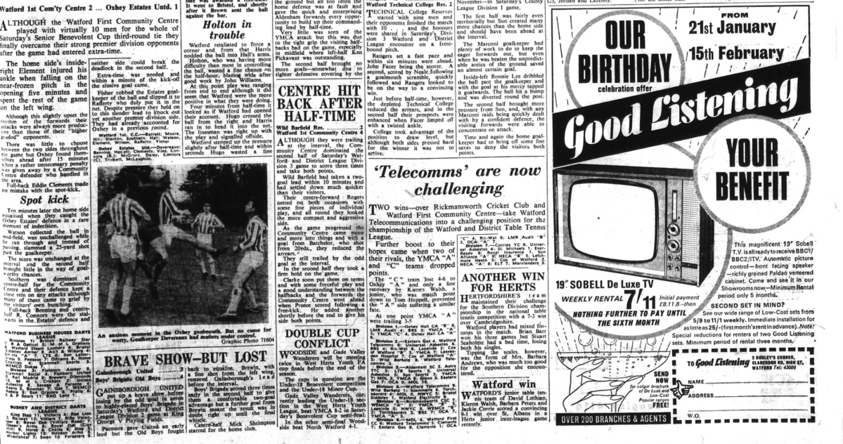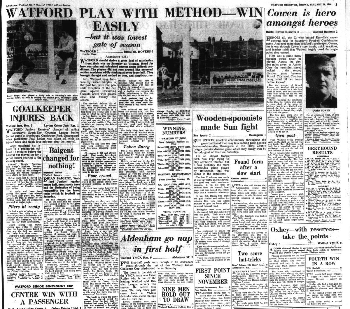 News on preparations for the World Cup and a supporter queries the positioning of Cliff Holton. He wouldn’t have to worry about this for long (see Watford Observer 4 Feb 1966).
