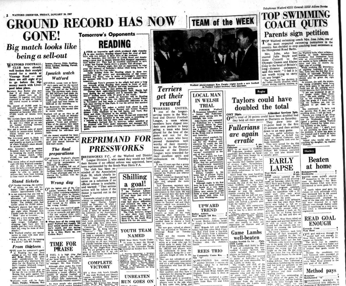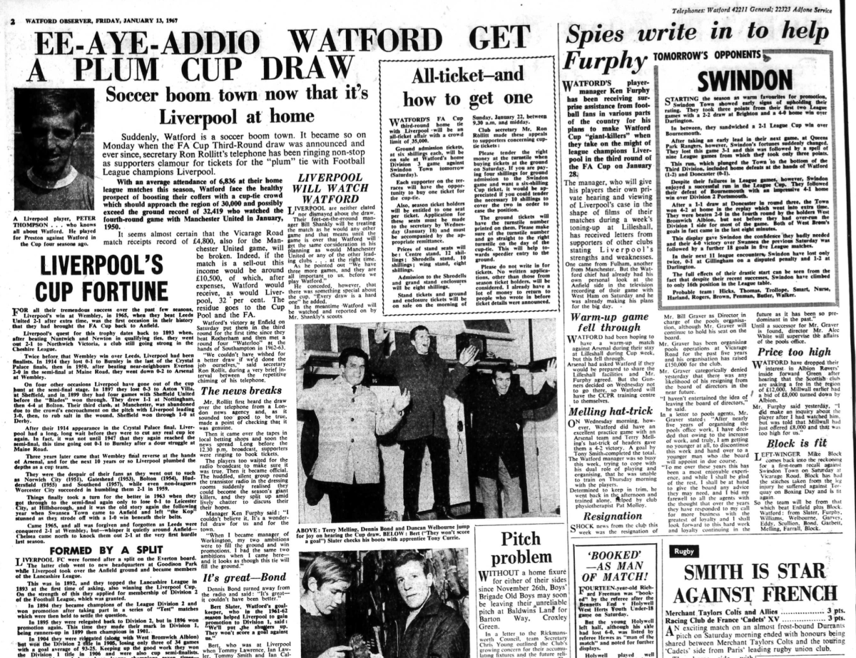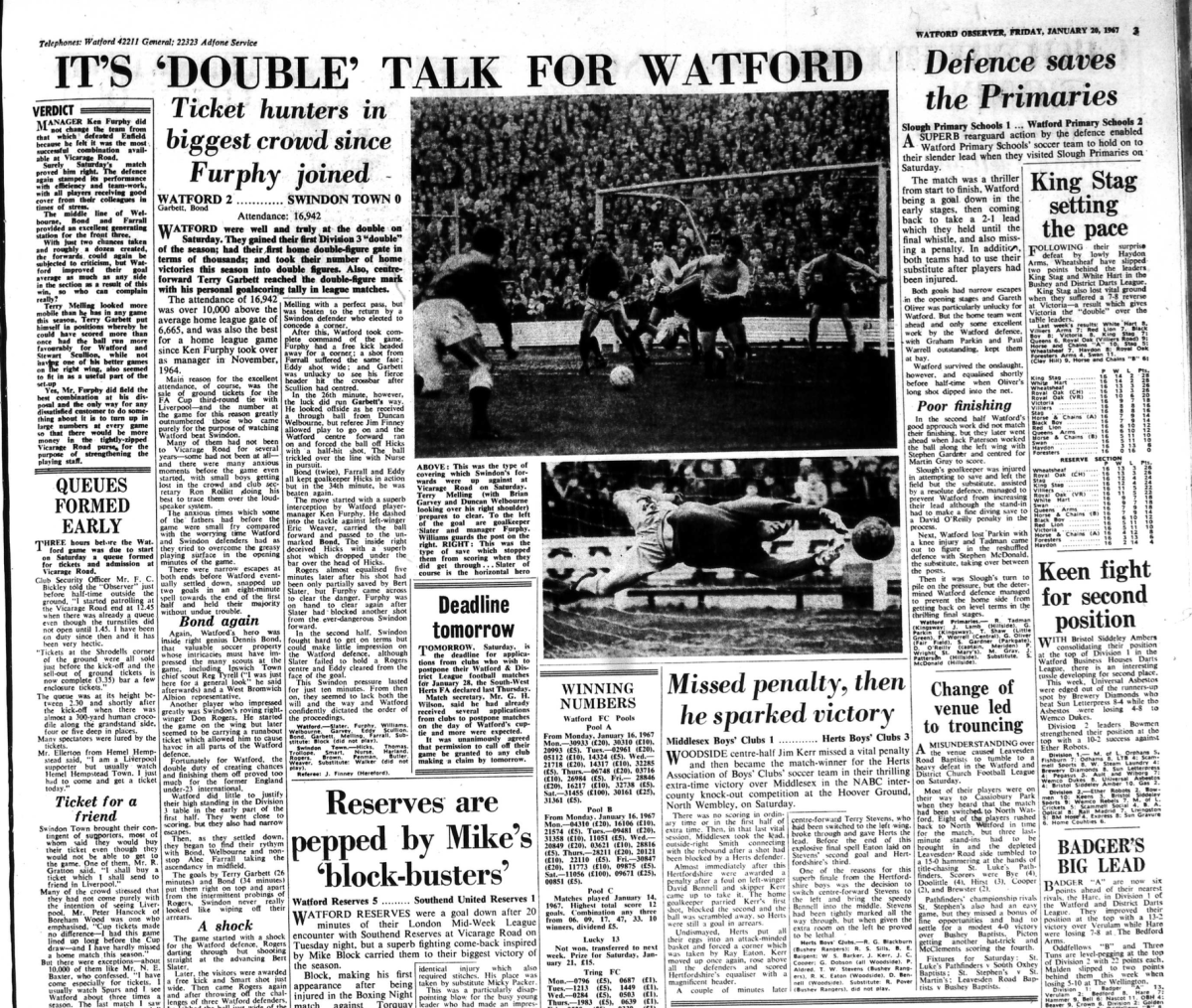 Taken from the programme on 4th February 1967-Division Three, Watford 4 Doncaster Rovers 1