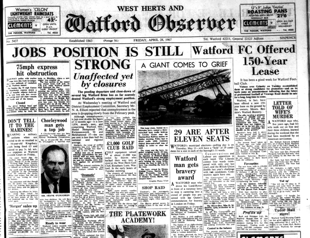 28th April 1967- Watford Observer Share this: Share on X (Opens in new window) X Share on Facebook (Opens in new window) Facebook