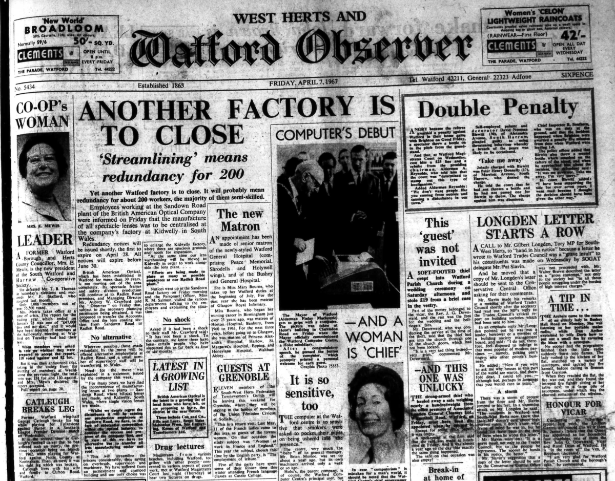 7th April 1967- Watford Observer Share this: Share on X (Opens in new window) X Share on Facebook (Opens in new window) Facebook