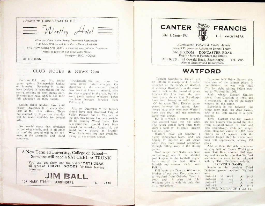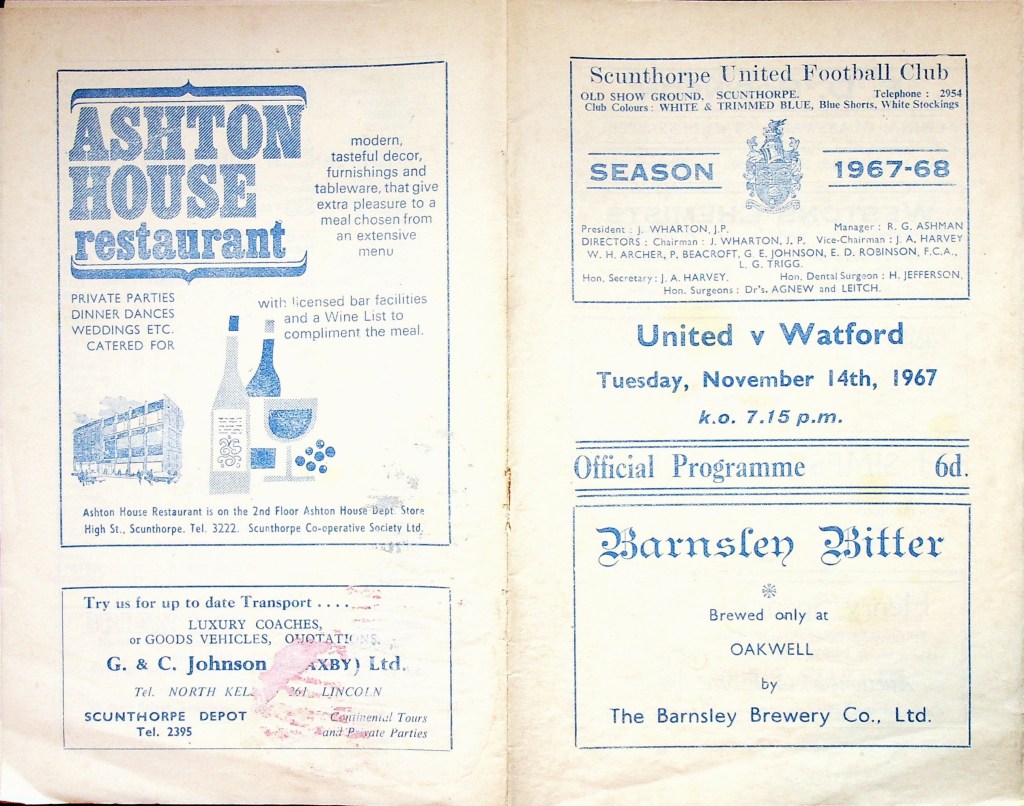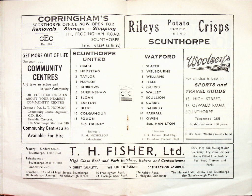 14th November 1967- Division Three, Scunthorpe United 1 Watford 1 Leave a Reply http://watford.fcdb.info?s=37908&id=2700 Daily Mirror, 15 Nov 1967 Watford Observer match report https://www.soccerbase.com/matches/results.sd?date=1967-11-14 https://www.11v11.com/league-tables/league-division-three/14-november-1967/ Share this: Share on X (Opens in new window) X Share on Facebook (Opens in new window) Facebook