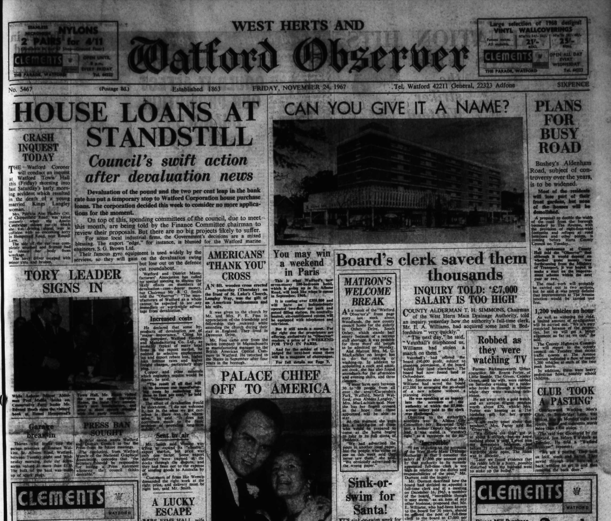 17th November 1967- Watford Observer Share this: Share on X (Opens in new window) X Share on Facebook (Opens in new window) Facebook