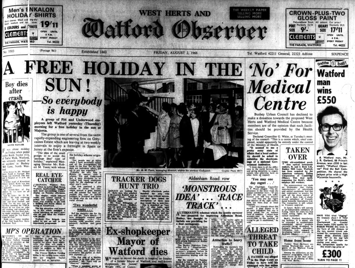 2nd August 1968- Watford Observer Share this: Share on X (Opens in new window) X Share on Facebook (Opens in new window) Facebook