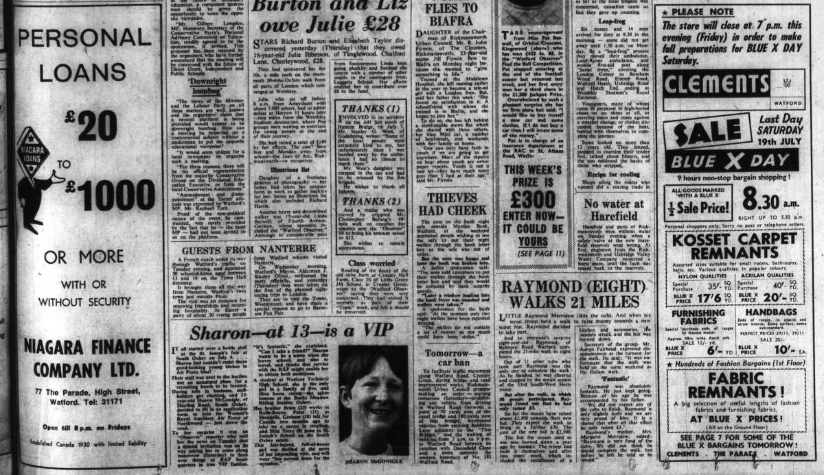 11th July 1969- Watford Observer Share this: Click to share on X (Opens in new window) X Click to share on Facebook (Opens in new window) Facebook