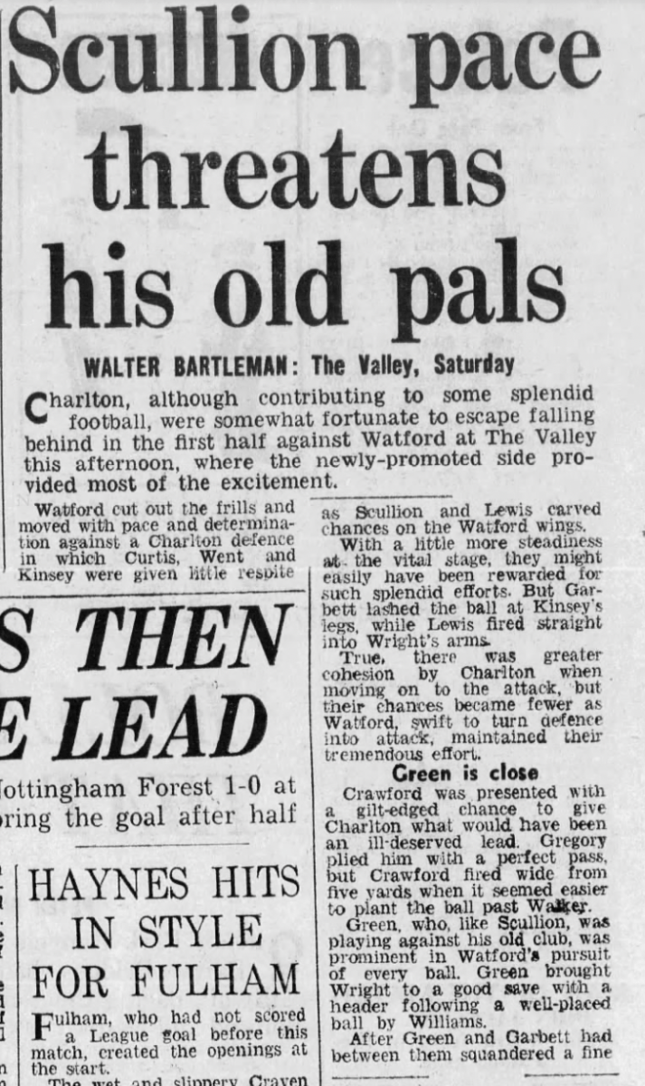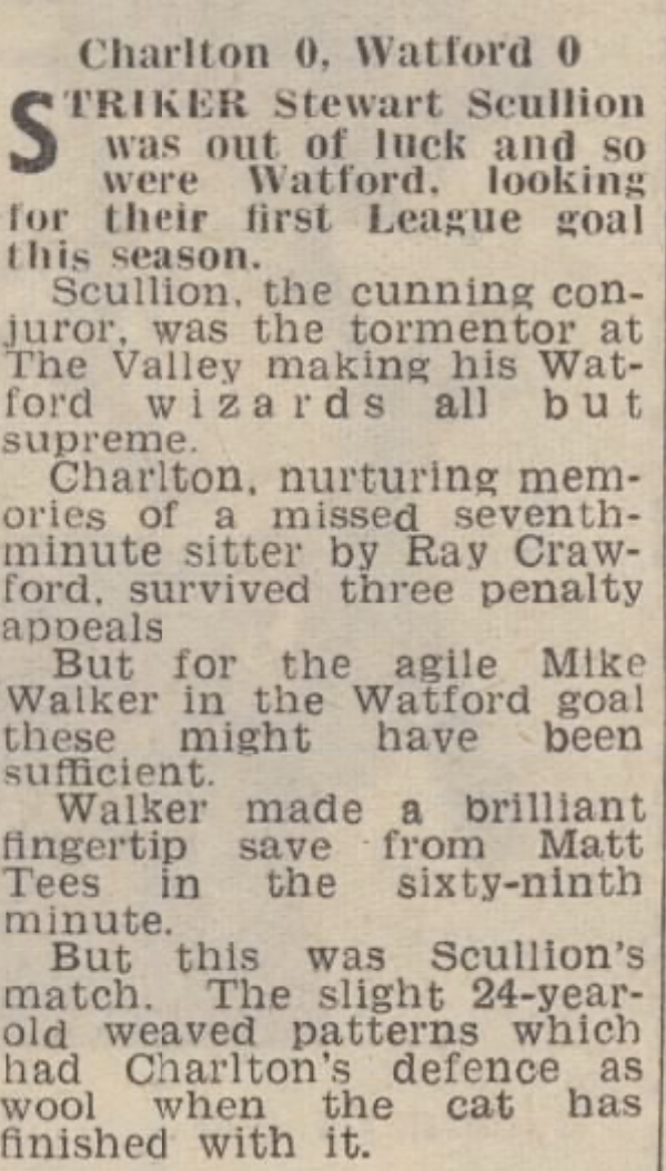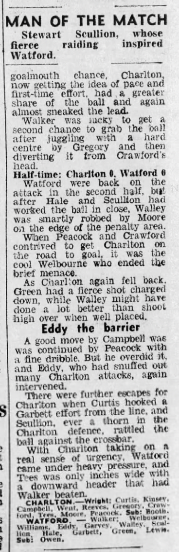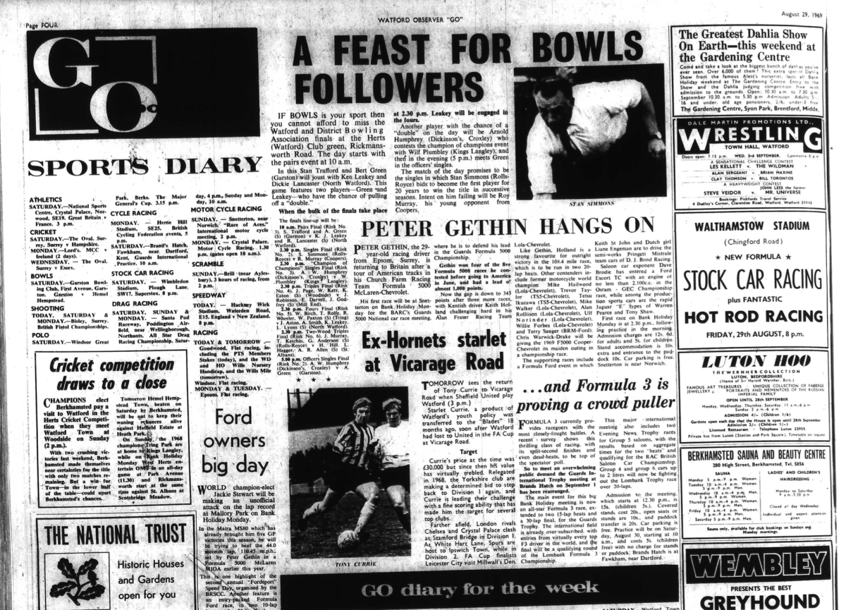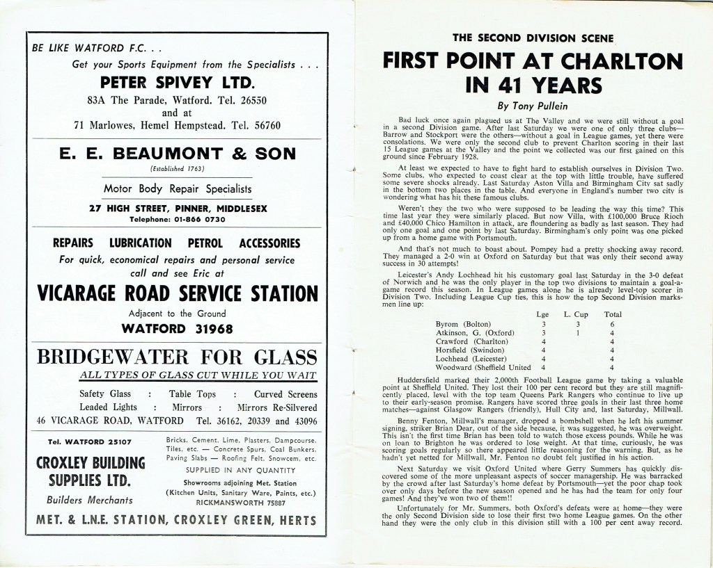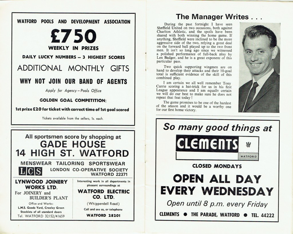 http://watford.fcdb.info?id=2790Evening Standard, 30 Aug 1969Sunday Mirror, 31 Aug 1969- Not sure what happened to the last line of the report!The Observer, 31 Aug 1969