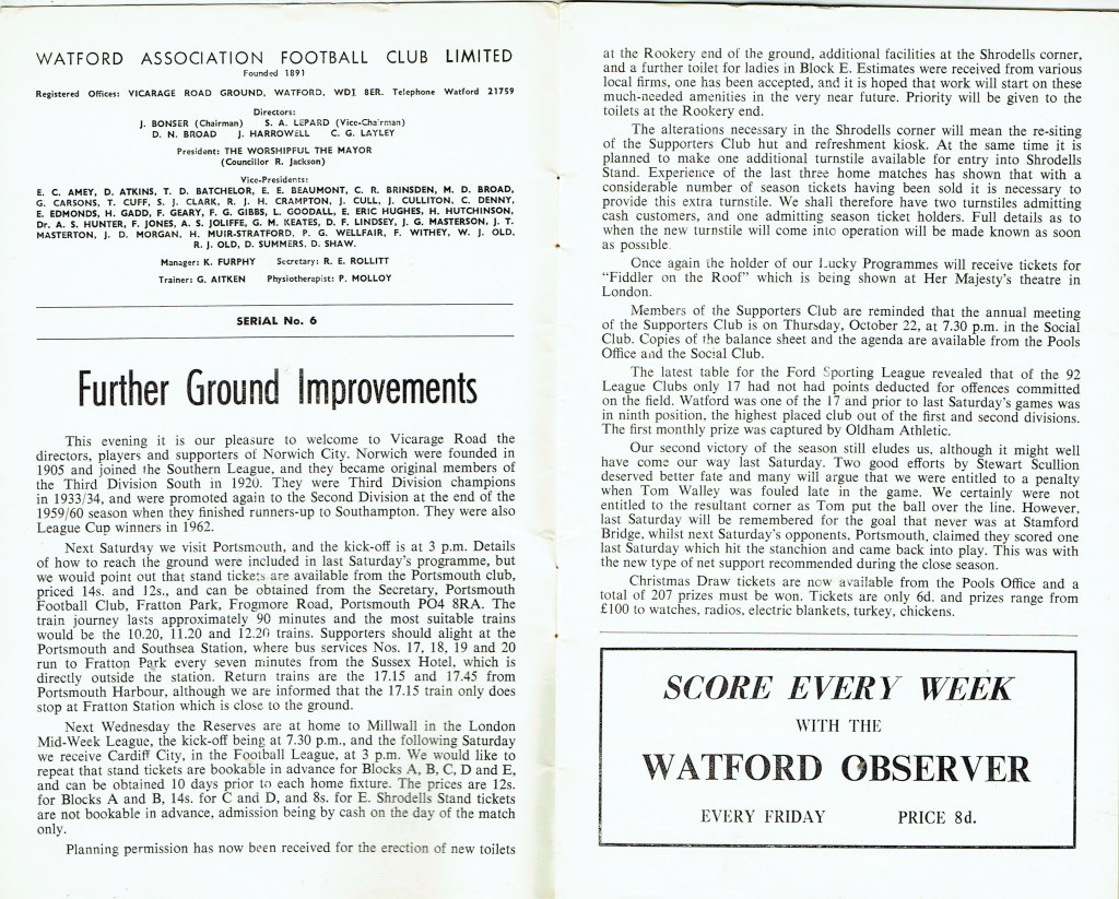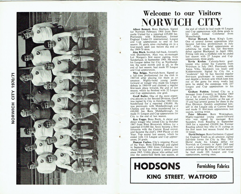 30th September 1970- Division Two, Watford 2 Norwich City 0 Leave a Reply http://watford.fcdb.info?id=2844 Watford Observer match report Share this: Share on X (Opens in new window) X Share on Facebook (Opens in new window) Facebook