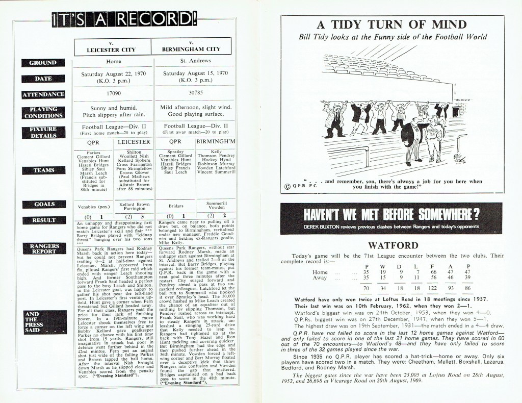 5th September 1970- Division Two, Queens Park Rangers 1 Watford 1 Leave a Reply http://watford.fcdb.info?id=2839 Sunday Mirror, 6 Sep 1970 Sunday People, 6 Sep 1970 Watford Observer match report Share this: Share on X (Opens in new window) X Share on Facebook (Opens in new window) Facebook