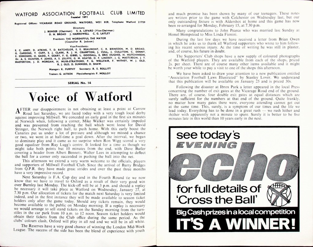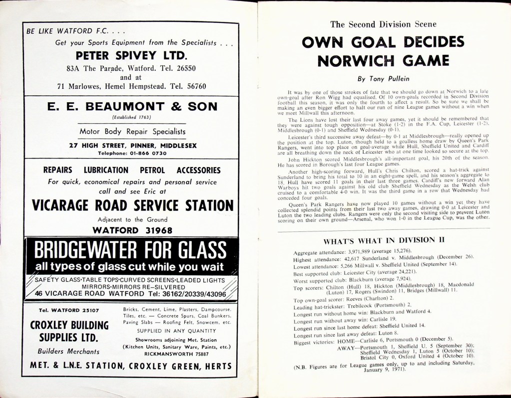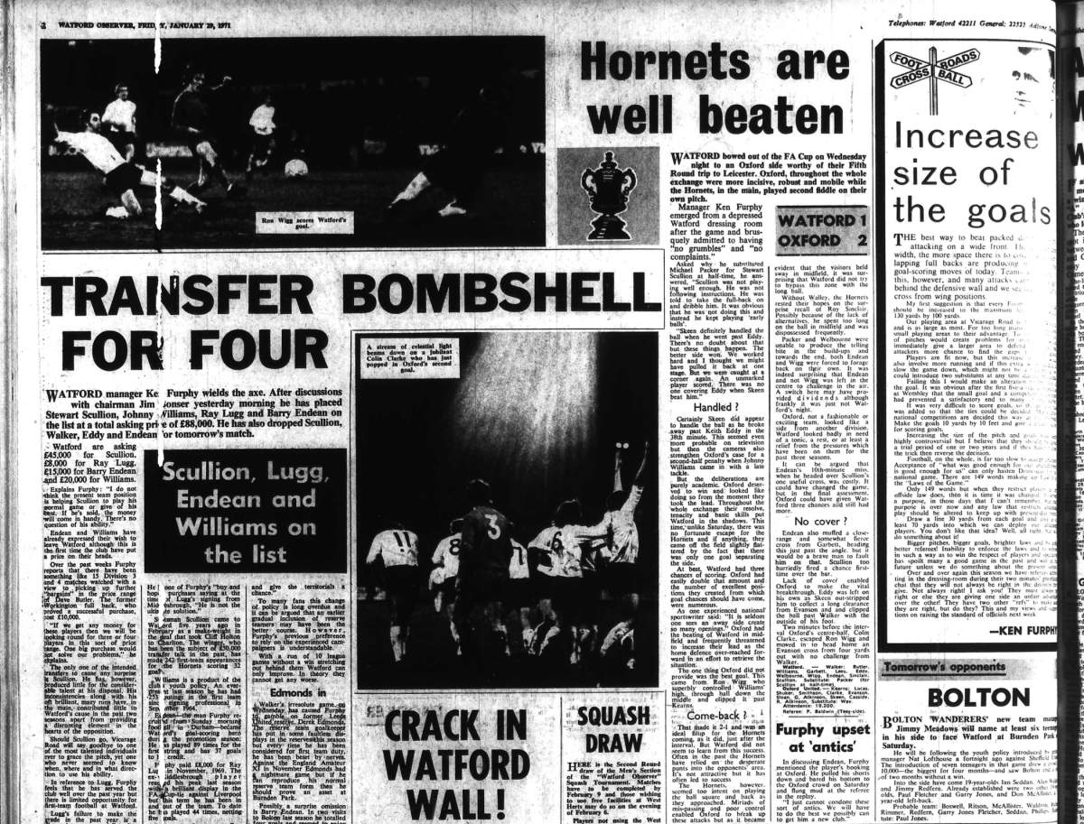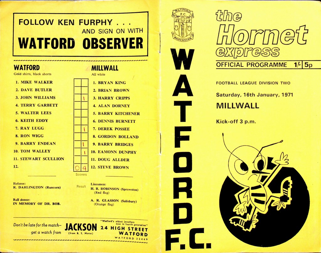Stewart Scullion would move to Sheffield United in May for £25,000, Ray Lugg didn’t go until July 1972 when he joined Plymouth Argyle for £3,500. Ken Furphy left Watford in July to become manager of Blackburn Rovers.