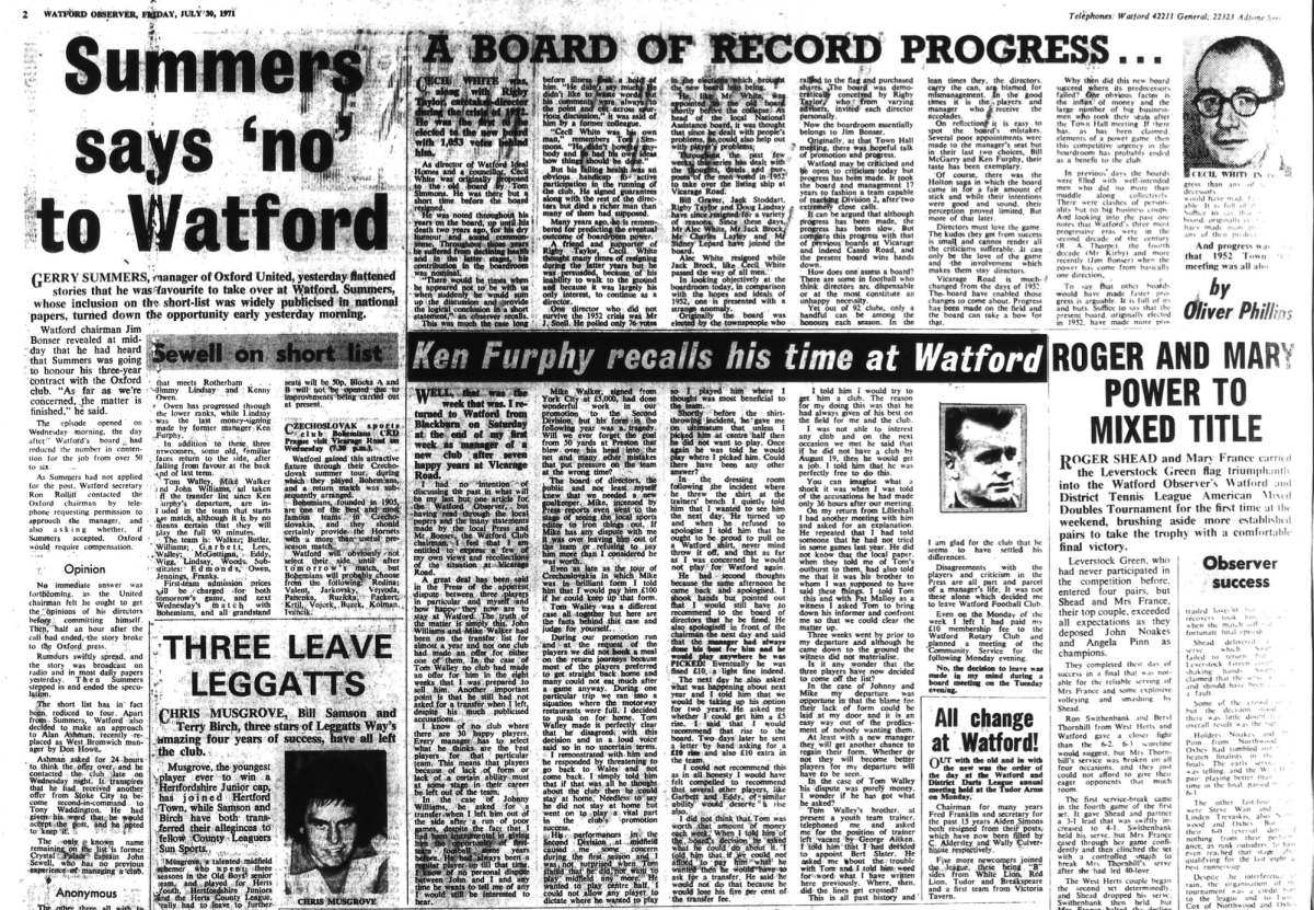30th July 1971- Watford Observer Share this: Share on X (Opens in new window) X Share on Facebook (Opens in new window) Facebook