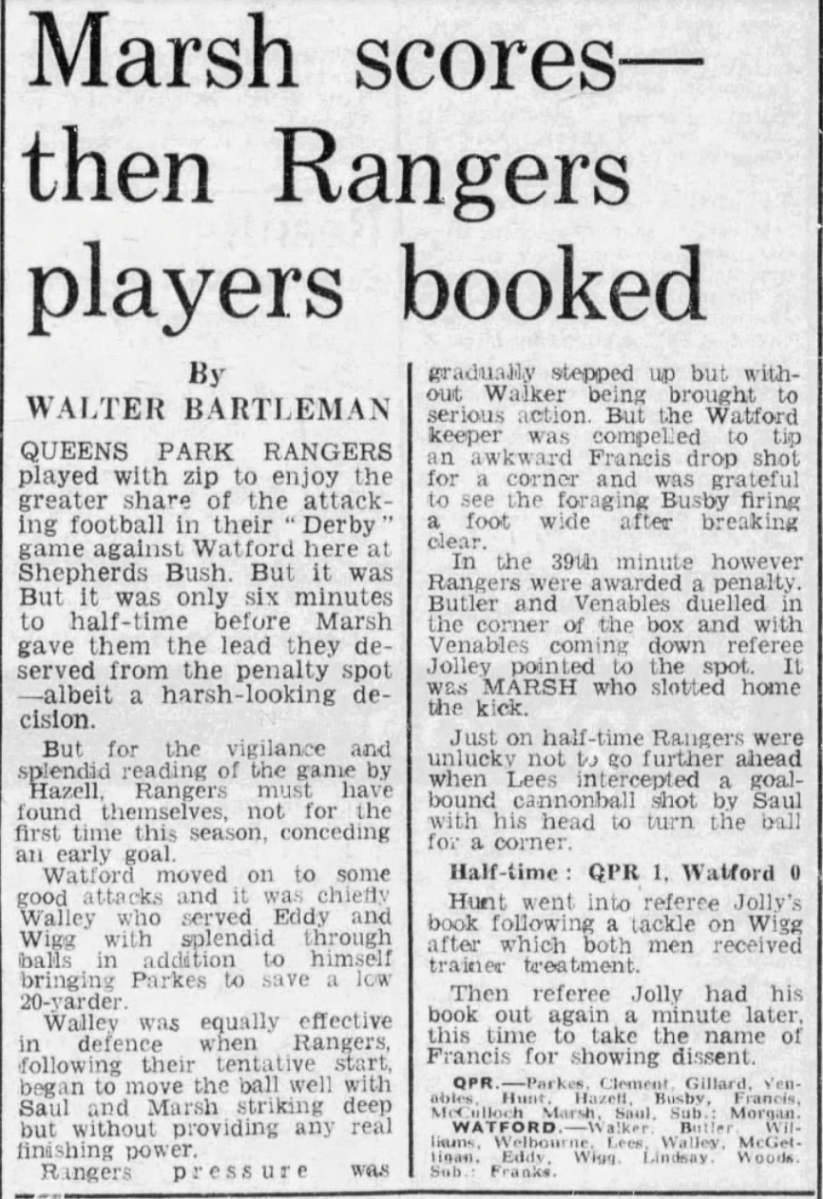 25th September 1971- Division Two, Queens Park Rangers 3 Watford 0 Leave a Reply http://watford.fcdb.info?id=2890 Evening Standard, 25 Sep 1971 Sunday Mirror, 26 Sep 1971 Sunday People, 26 Sep 1971 Watford Observer match report Share this: Share on X (Opens in new window) X Share on Facebook (Opens in new window) Facebook