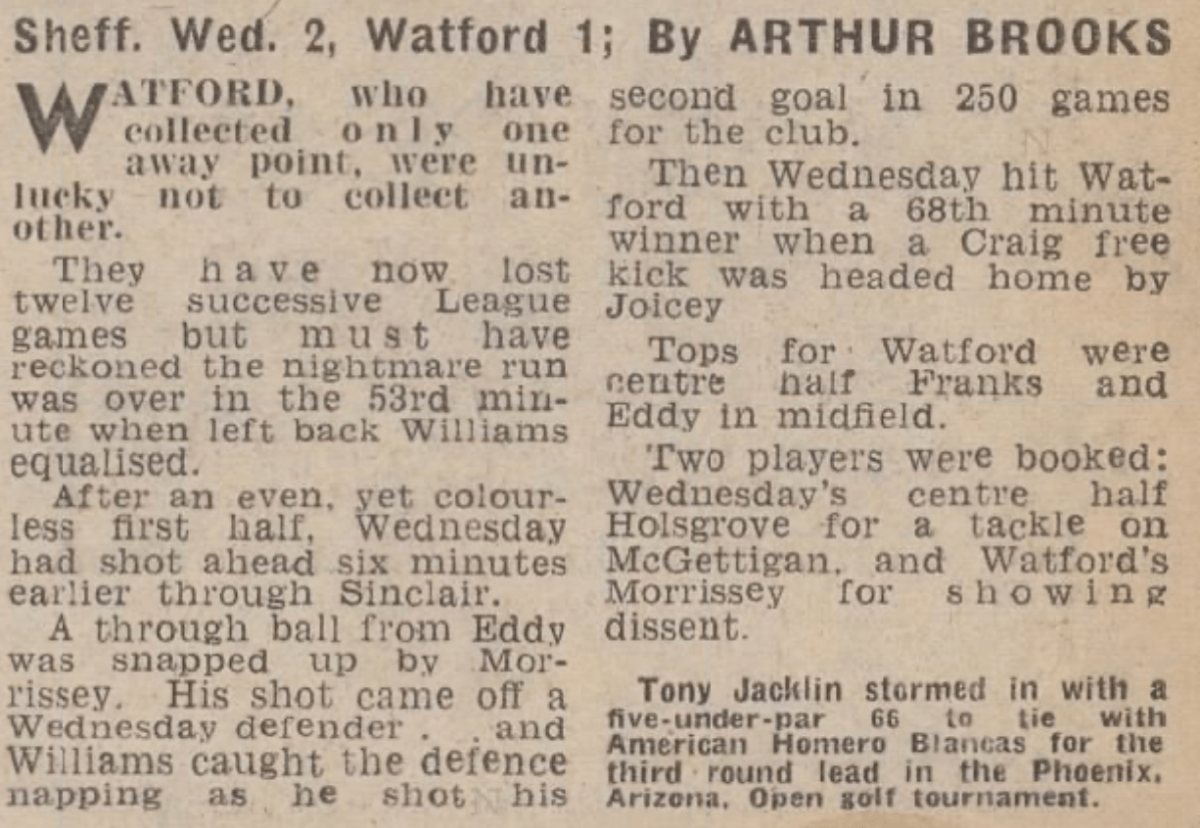 A strike by miners caused a power crisis across the country. One of the measures introduced by the government to preserve energy was a ban on floodlights which is why our game kicked off at 2.45pm.
