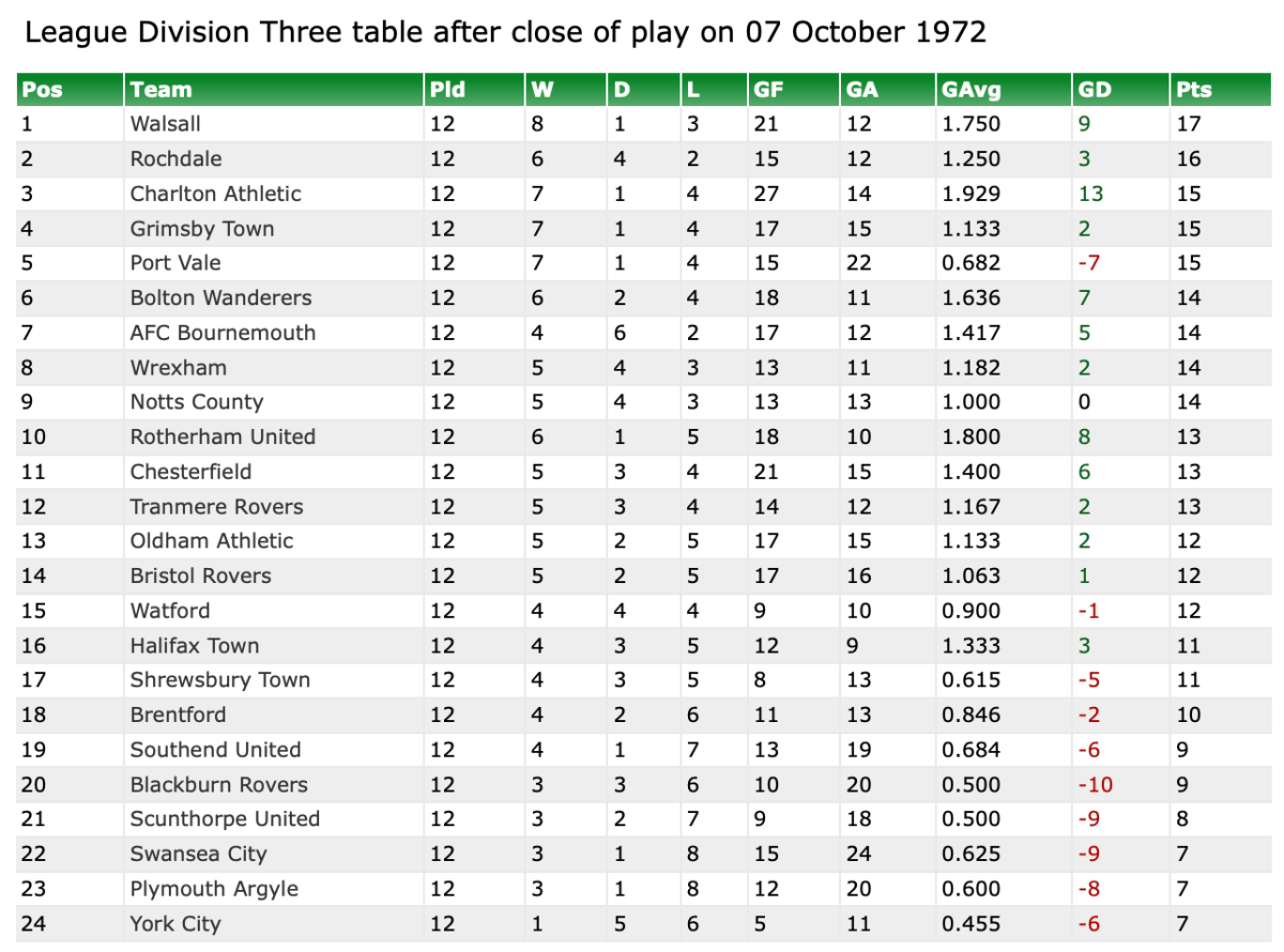 7th October 1972- Division Three, Rochdale 1 Watford 0 http://watford.fcdb.info/index.php?page=matches Sunday People, 8 Oct 1972 Watford Observer match report https://www.soccerbase.com/matches/results.sd?date=1972-10-07 https://www.11v11.com/league-tables/league-division-three/07-october-1972/ Share this: Share on X (Opens in new window) X Share on Facebook (Opens in new window) Facebook