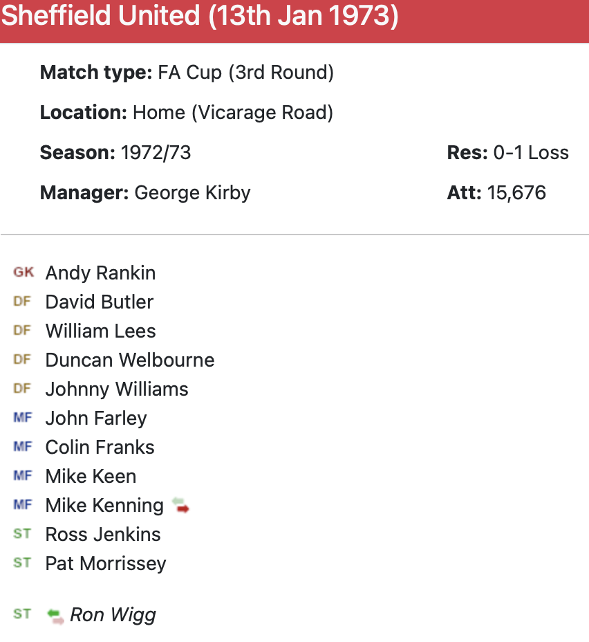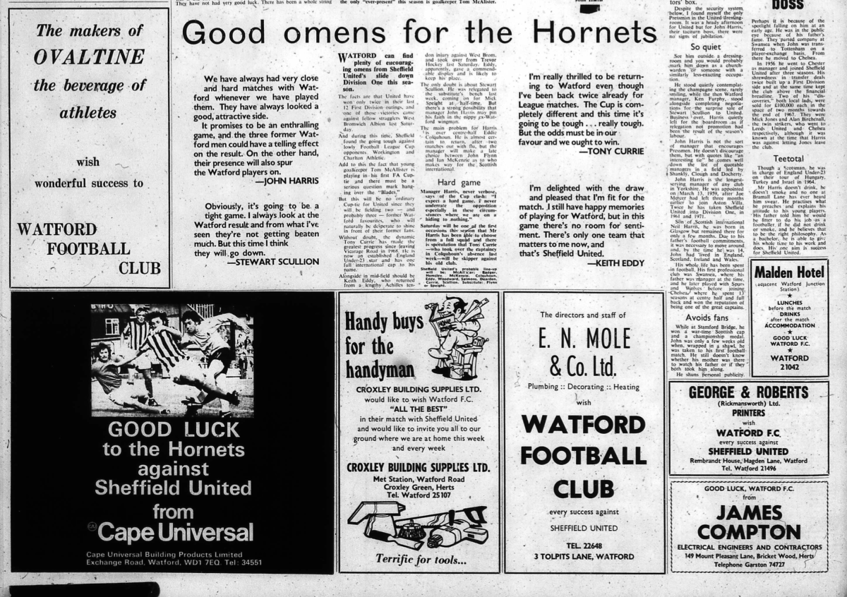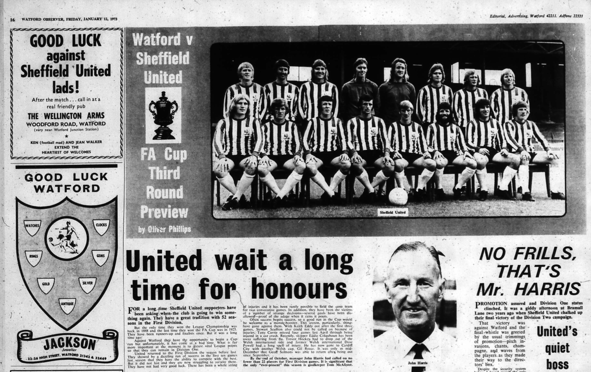 13th January 1973- FA Cup Third Round, Watford 0 Sheffield United 1 Leave a Reply http://watford.fcdb.info/index.php?page=matches Evening Standard, 13 January 1973 Sunday Mirror, 13 Jan 1973 Sunday People, 14 January 1973 Watford Observer match report Share this: Share on X (Opens in new window) X Share on Facebook (Opens in new window) Facebook