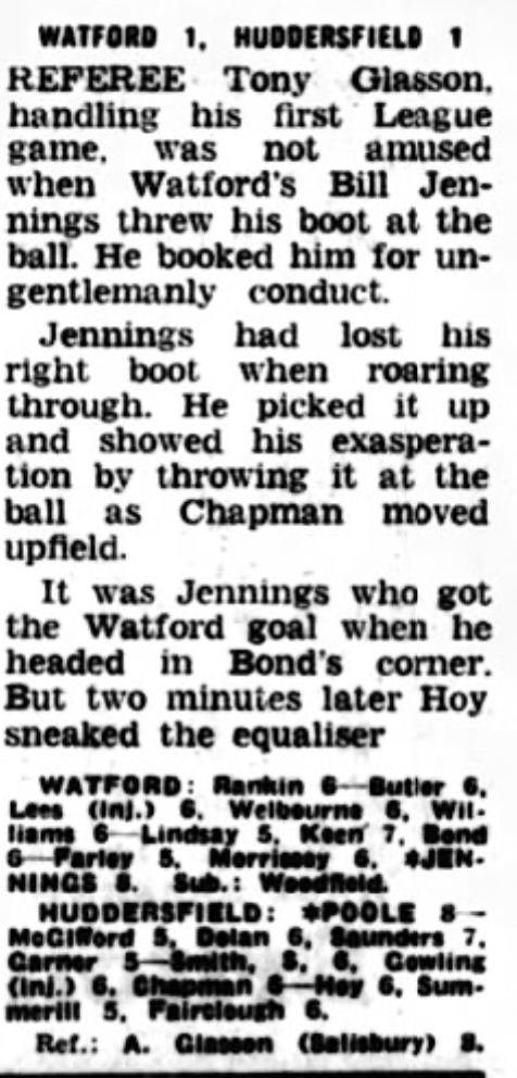 25th August 1973-Division Three, Watford 1 Huddersfield Town 1 Leave a Reply http://watford.fcdb.info?id=2978 Evening Standard, 25 Aug 1973 Huddersfield Daily Examiner, 25 Aug 1973 Sunday People, 26 Aug 1973 Watford Observer match report Share this: Click to share on X (Opens in new window) X Click to share on Facebook (Opens in new window) Facebook